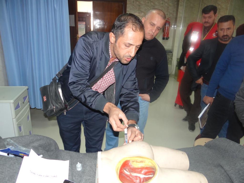 ضمن فعاليات اليوم الثاني لدورة الاسعافات الاولية المقامه على رحاب كلية التمريض ولنشر الوعي العلمي والعملي بين افراد المجتمع والتي يُمكن ان تساهم في انقاذ كثير من البشر كونها طوق نجاه لكثيرين في بعض المواقف التي نتعرض لها في حياتنا اليومية قام الطبيب الاستشاري عبد اللطيف جابر بالقاء محاضرة عملية عن تضميد وخياطة الجروح تلاها محاضرة للمدرس المساعد مهند خليل عن طرق اعطاء الدواء اقيم الجانب العملي في مختبرات كلية التمريض وبتقديم كلاً من الممرض الجامعي محمود حازم والممرضة الجامعية سكته خضير علي طريقة زرق الابر في مواقها المختلف في الجسم ..