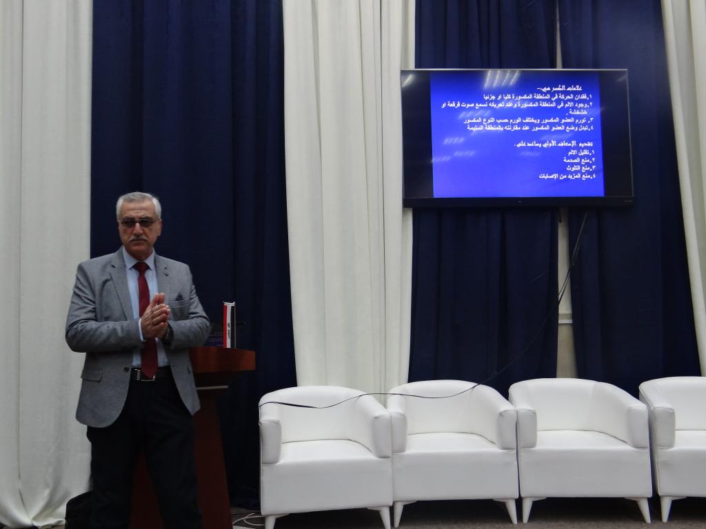 ضمن فعاليات اليوم الرابع للدورة التدريبية المقامة في كلية التمريض وعلى رحاب قاعه الاجتماعات الكبرى افتتح الدورة الاستاذ المساعد الدكتور بشار جاسم بمحاضرة بعنوان اسعاف الكسور والاصابات الرياضية ثم القى المدرس ايمان سالم الخفاف محاضرة عن الصدمة والاسعاف النفسي واختتم اليوم الرابع بمحاضرة للمدرس احمد على الجميلي بمحاضرة بعنوان لدغة الحية والعقرب وكيفية التعامل مع تلك الاصابه. وباشراف م. يمامة زهير والممرضة الجامعية زينب فيصل جاءت تلك المحاضرات ايماناً من كلية التمريض للاهمية البالغة للاسعاف الاولي لتخطي المواقف الصعبة التي نتعرض لها وتحتاج منا العلم والمعرفة..