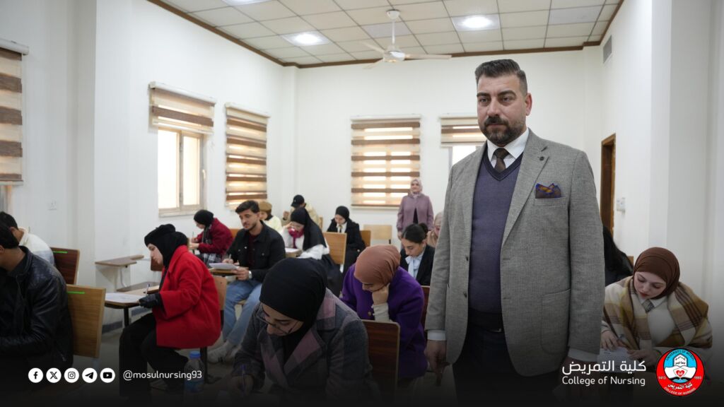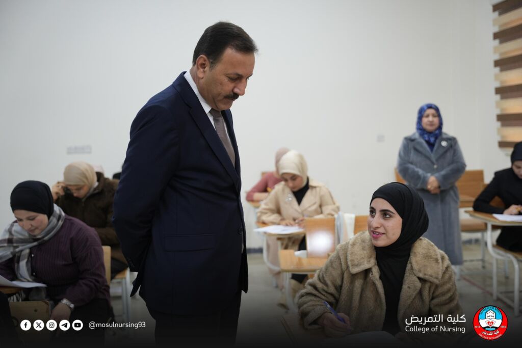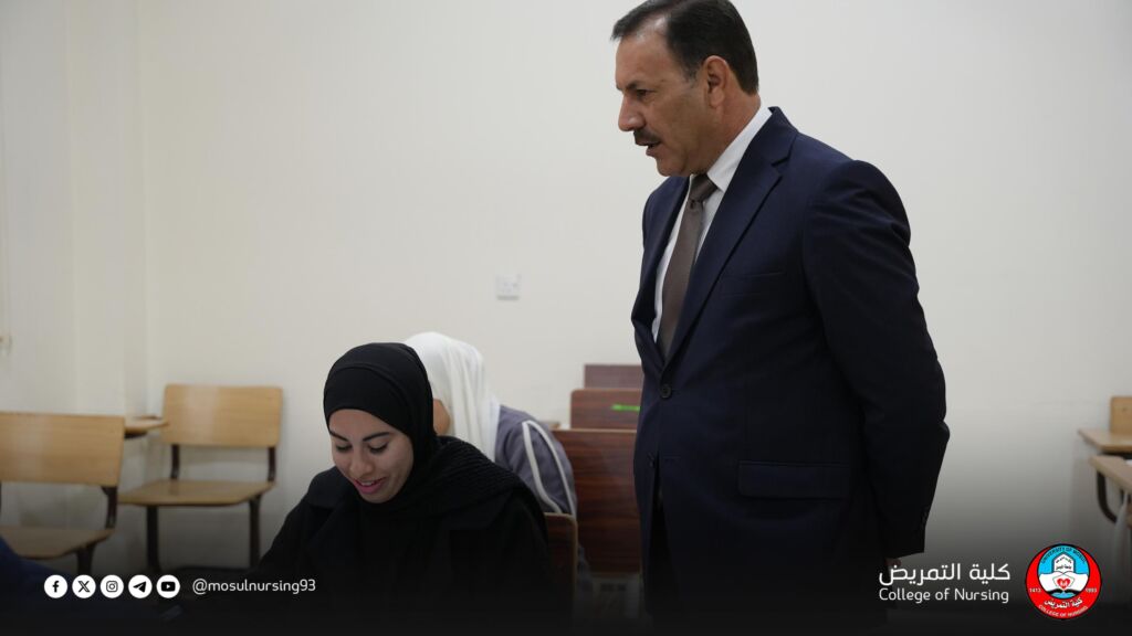 بالتزامن مع بدء الامتحان التقويمي لكليات التمريض، أجرى السيد عميد كلية التمريض، الدكتور تحسين محسن حسين، جولةً تفقدية للاطلاع على بدء الامتحان التقويمي المشترك لكليات التمريض وذلك في إطار حرص عمادة الكلية على توفير بيئة امتحانية مناسبة والالتزام بالتعليمات والضوابط المعتمدة.