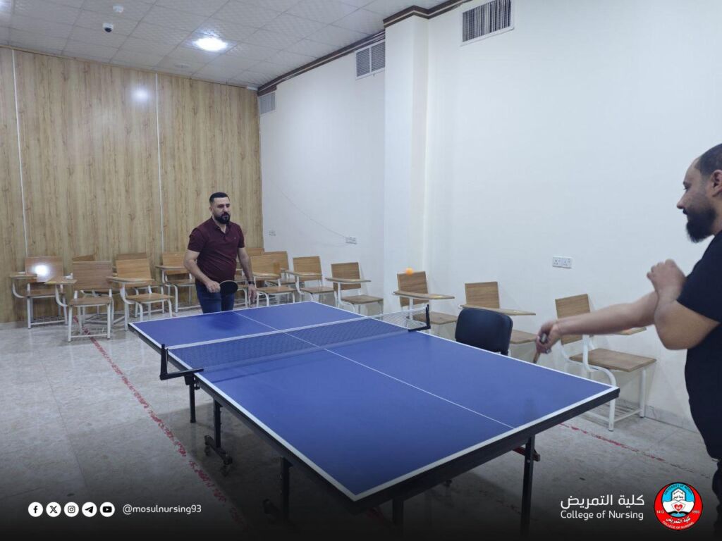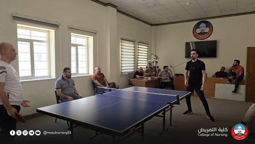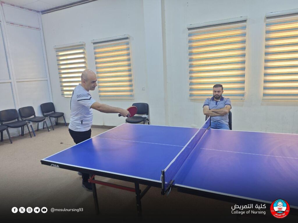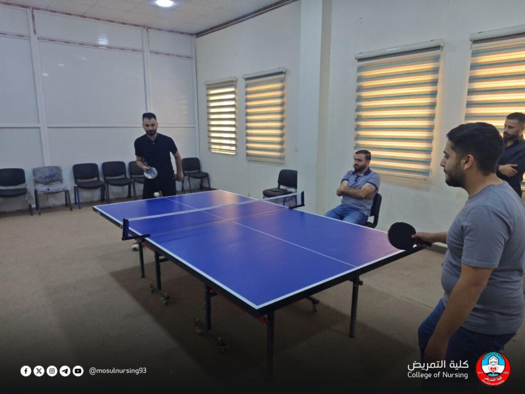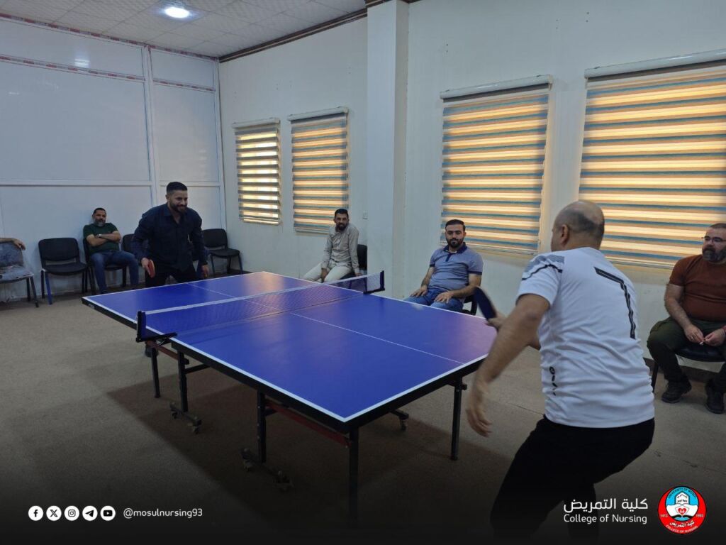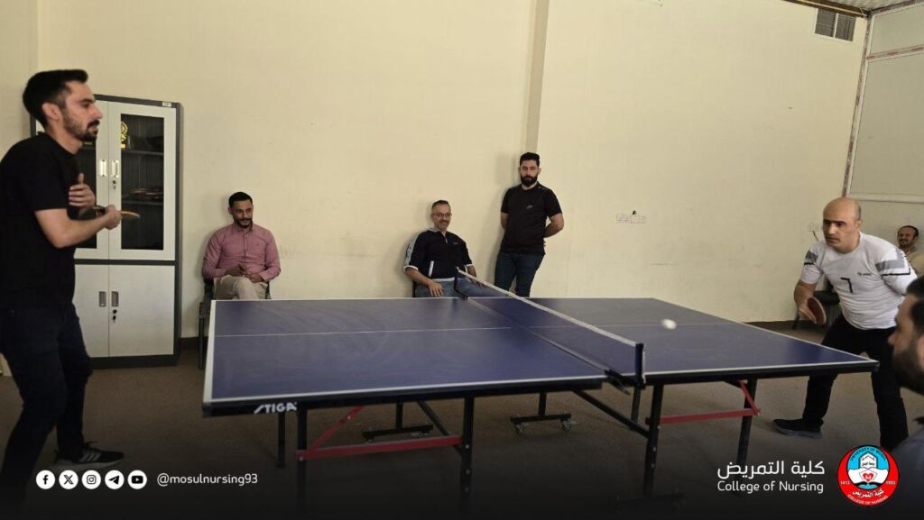 برعاية ومتابعة عميد كلية التمريض بجامعة الموصل، الأستاذ المساعد الدكتور تحسين محسن حسين، وبإشراف شعبة النشاطات الطلابية، نظمت الكلية بطولة تنس الطاولة (المنضدة) لمنتسبيها، وسط أجواء رياضية مفعمة بالحماس وروح التنافس الإيجابي.