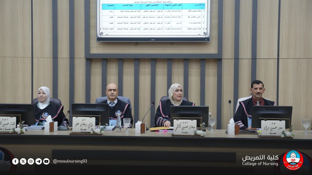 • الأستاذ المساعد الدكتورة هناء حسين مخلف – عضواً ومشرفاً / كلية التمريض – جامعة الموصل
