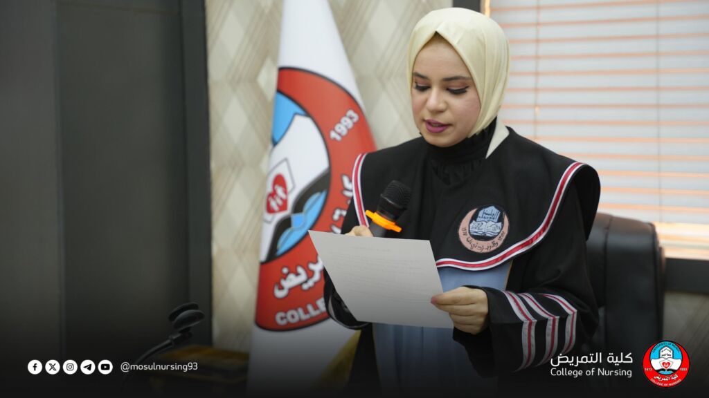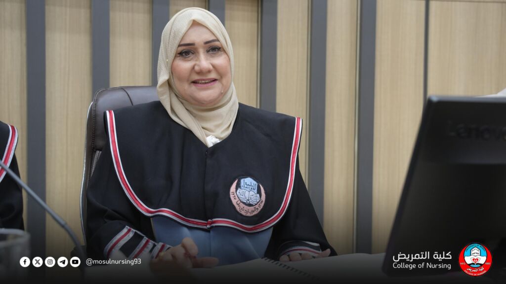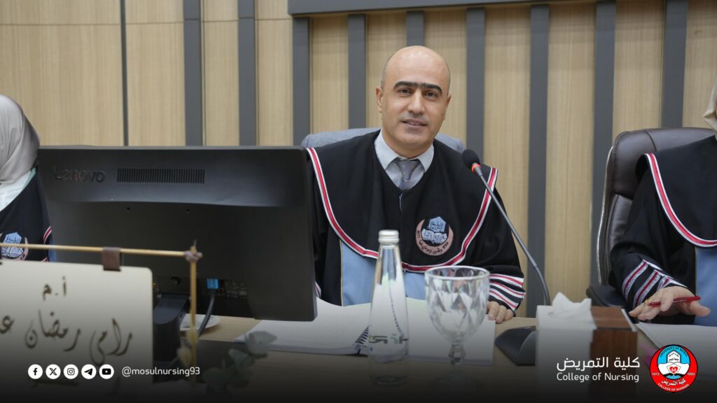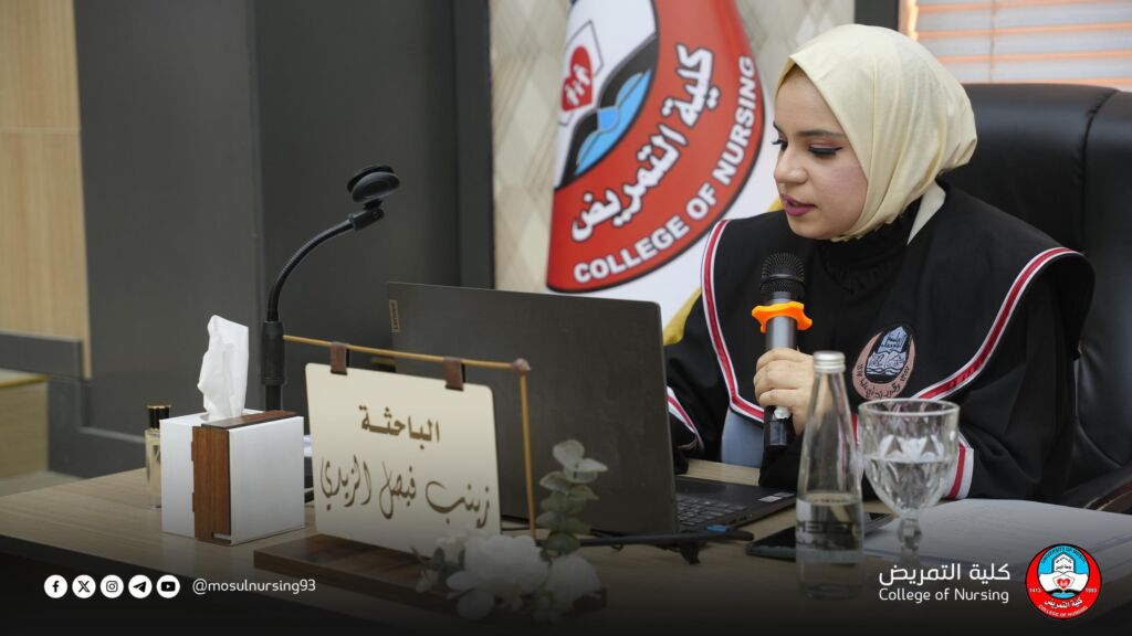 بحضور الأستاذ المساعد الدكتور تحسين محسن حسين، عميد كلية التمريض بجامعة الموصل، والدكتورة ريان إبراهيم خليل، معاون العميد للشؤون الإدارية والمالية، جرت صباح اليوم الاثنين الموافق 25 آب 2025 في قاعة المناقشات بالكلية مناقشة رسالة الماجستير المقدمة من الطالبة زينب فيصل محمد والموسومة:
