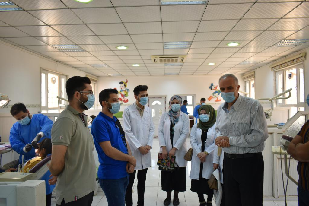 ضمن نشاطات وحدة التاهيل والتوظيف والمتابعة في كلية التمريض تم يوم الاحد الموافق ٢٠٢١/٥/٣٠ تدريب عدداً من طلبة كلية التمريض المرحلة الثالثة في كلية طب الاسنان حيث رافق الطلبة كلاً من المدرس المساعد احمد زهير مسؤول وحدة التاهيل والتوظيف والمدرس المساعد احمد يحيى حيث استقبلهم السيد رئيس فرع الاطفال والتقويم وطب الاسنان الوقائي الاستاذ الدكتور علي راجح الخطيب . وتاتي هذه المبادرة ضمن مبادرات بدء تنفيذ التعاون المشترك بين كليتى التمريض وطب الأسنان حيث تمت مناقشة آليات التعاون في مجال تطوير نظم التدريب لطلبة كلية التمريض بتطبيق كل ما هو جديد في مجال نظم المعلومات الصحية ، حيث تسهم هذه الخطوة في تزويد الطلبة بمعارف وممارسات تمريضية يمكنها أن تخدم المجتمع بمجال أوسع وتوفر فضاءً جديداً من المعرفة والخبرة في تخصص العناية بالفم و الأسنان…