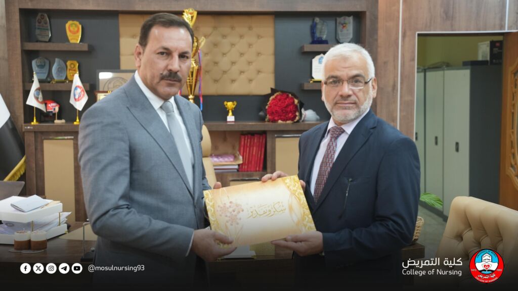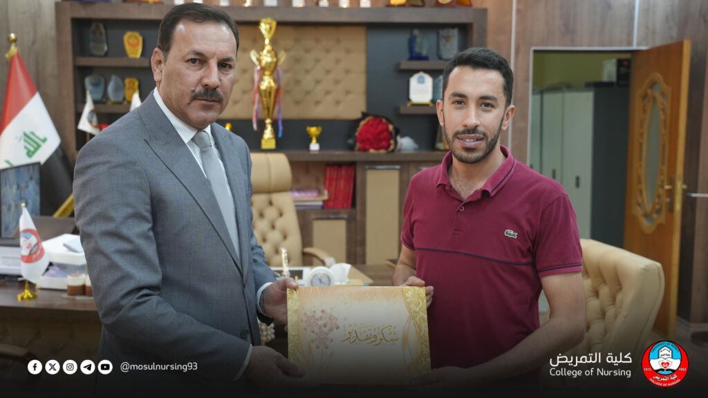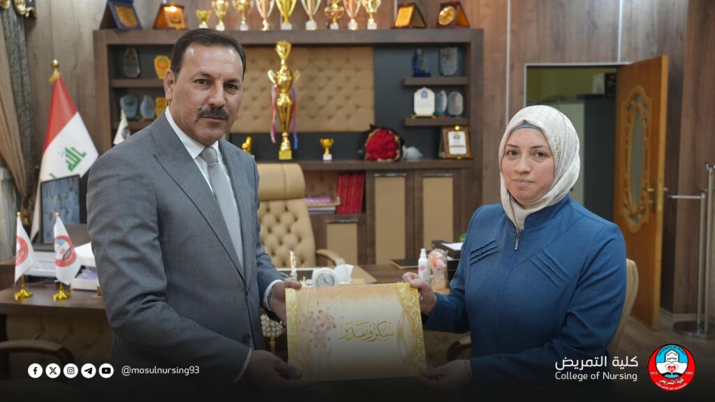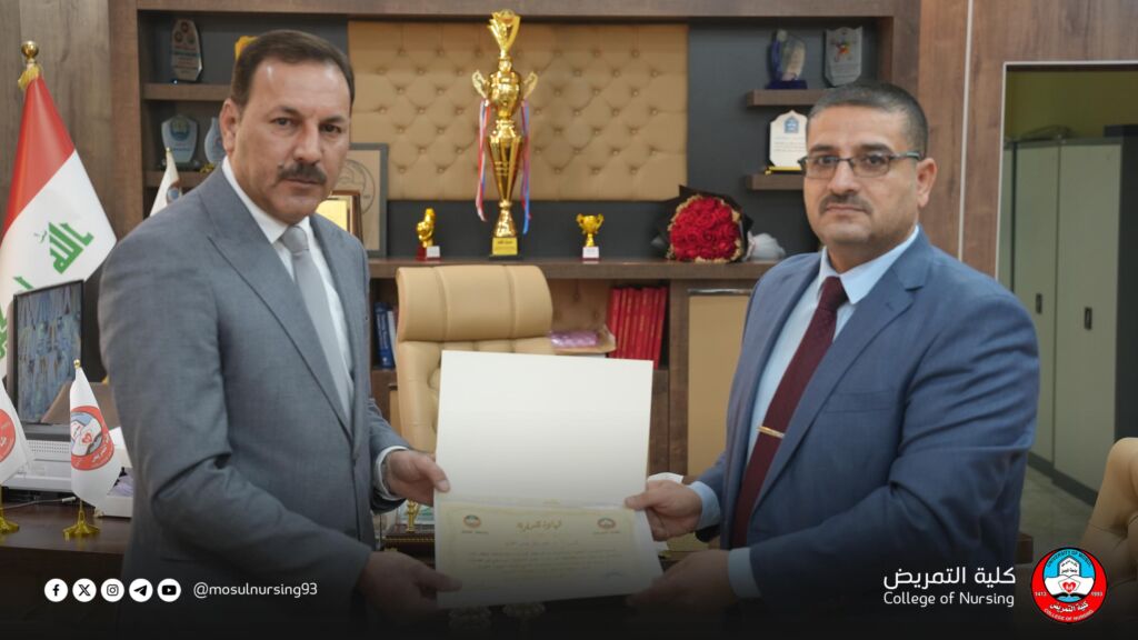 في أجواء يسودها الاعتزاز والامتنان، كرّم السيد عميد كلية التمريض الأستاذ المساعد الدكتور تحسين محسن حسين رؤساء لجان الاعتماد البرامجي، تقديراً لعطائهم المتميز وجهودهم الكبيرة التي أسهمت في دفع الكلية خطوات واثقة نحو نيل الاعتماد الأكاديمي وضمان جودة برامجها التعليمية.