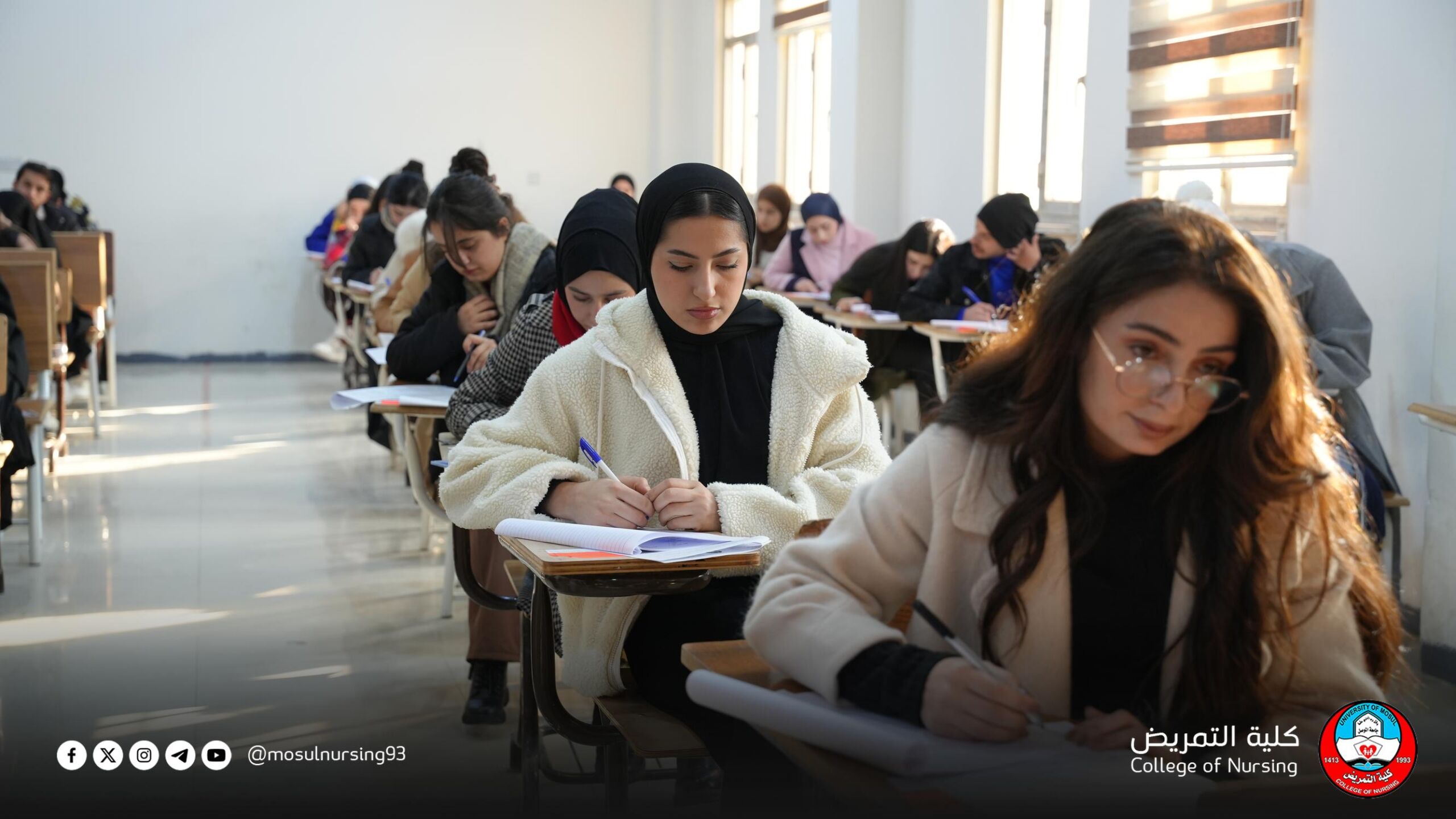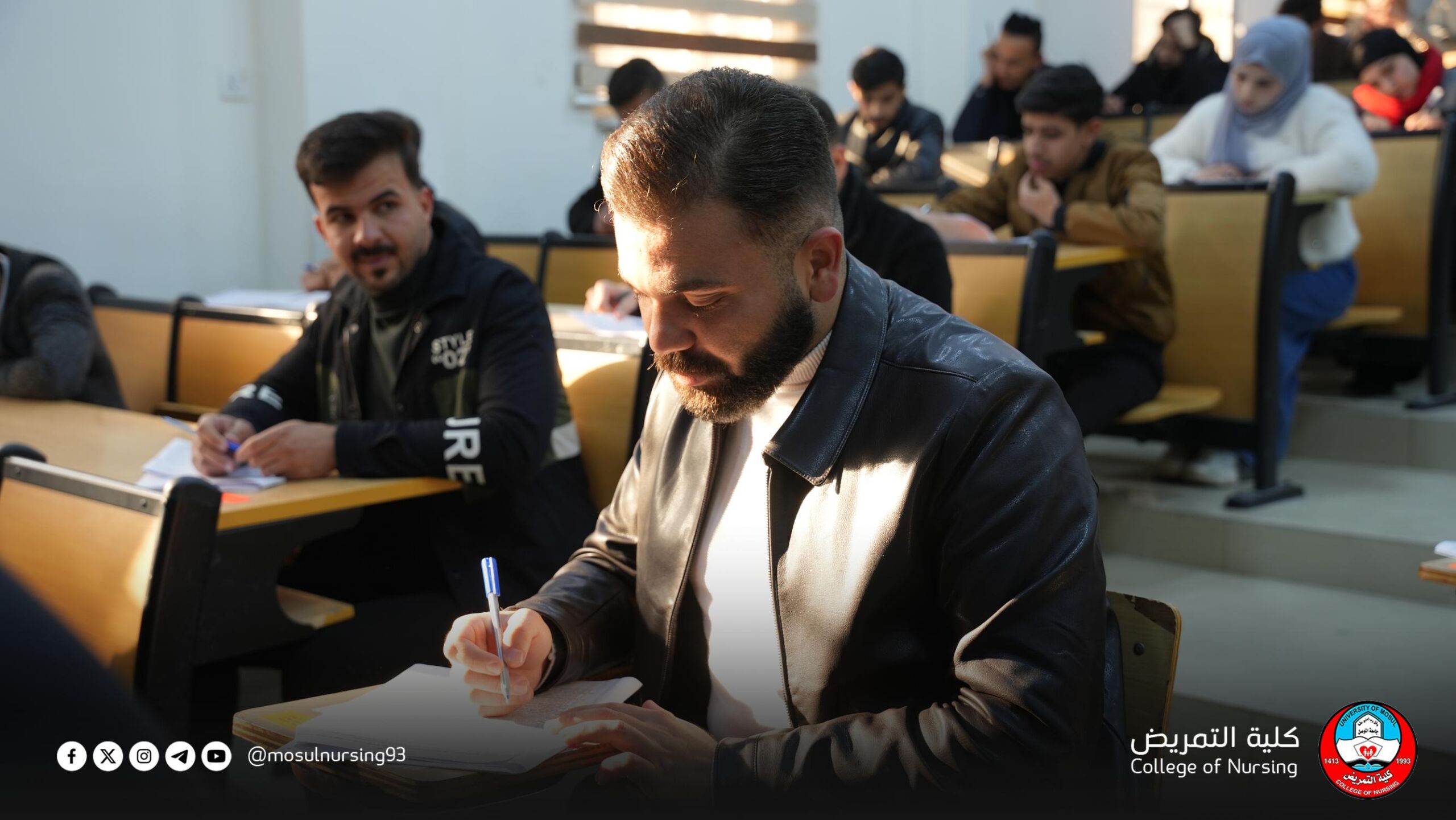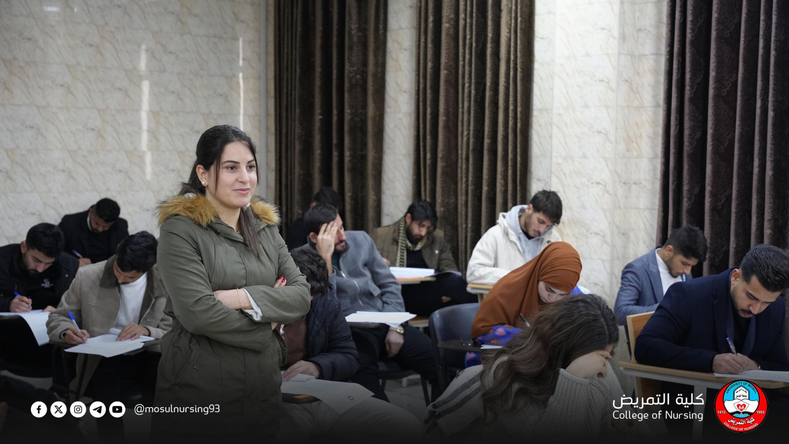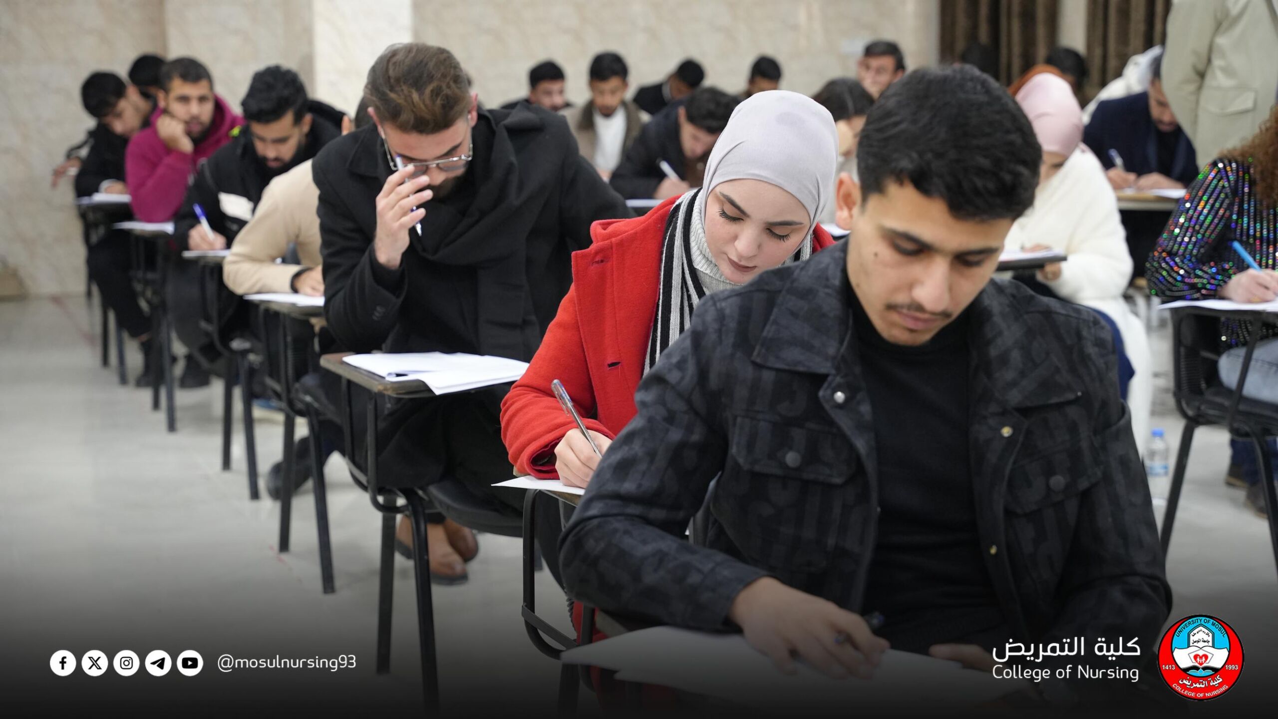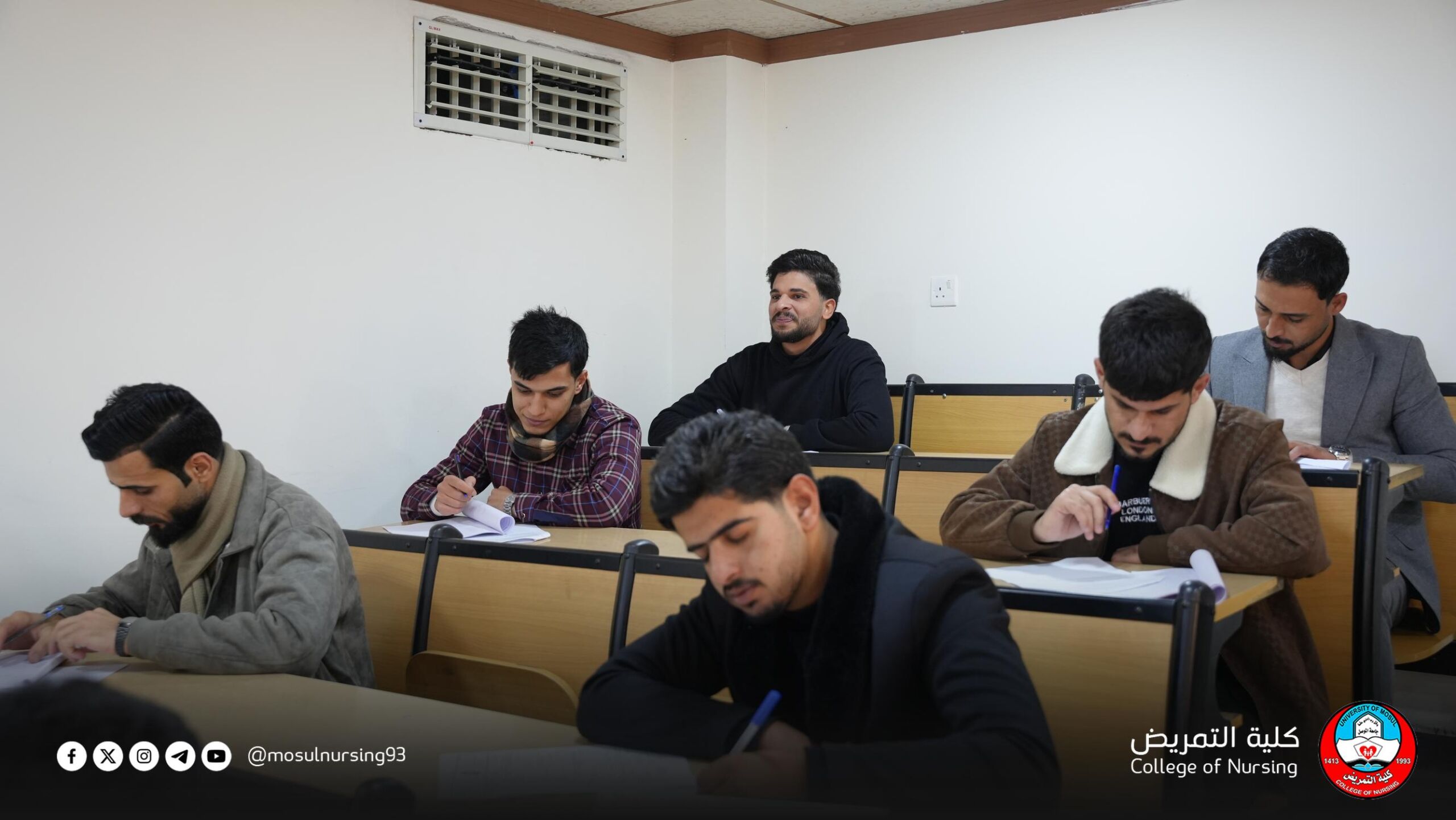 السيد عميد كلية التمريض الدكتور تحسين محسن حسين يجري جولة تفقدية للقاعات الامتحانية في الكلية، برفقة السيد معاون العميد للشؤون الإدارية والمالية الدكتور ريان إبراهيم خليل، والسيدة معاون العميد للشؤون العلمية وطلبة الدراسات العليا الدكتورة هناء حسين مخلف.