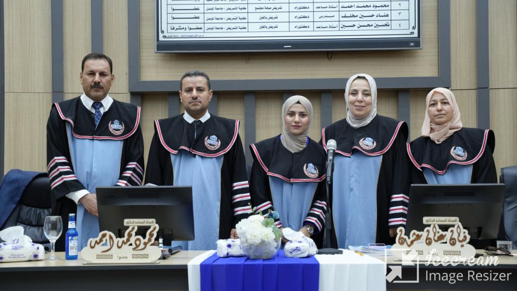 ترأس لجنة المناقشة الاستاذ المساعد الدكتورة روناك حسن برواري من جامعة دهوك / كلية التمريض وعضوية كل من الأستاذ المساعد الدكتور نصر موفق يونس من جامعة الموصل/ كلية التمريض. والمدرس الدكتور نواف محمد ظاهر من كلية التمريض/ جامعة الموصل.، وبأشراف وعضوية الاستاذ المساعد الدكتور تحسين محسن حسين من كلية التمريض/ جامعة الموصل.