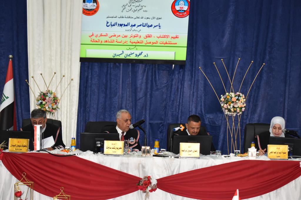 ناقشت كلية التمريض بجامعة الموصل رسالة ماجستير عن تقييم الاكتئاب ، القلق التوتر بين مرضى السركري في مستشفيات الموصل التعليمية : دراسة الشاهد والحالة ، يوم الاحد المصادف 29 اب 2021، حضر جانبا منها عميد كلية التمريض الاستاذ الدكتور سلوى حازم المختار ومسؤول الدراسات العليا م. ابراهيم طلال الصواف ومدير الموارد البشرية السيد وعد الله هاشم عبد القادر وكذلك عدد من تدريسيي الكلية وطلبة الدراسات العليا.