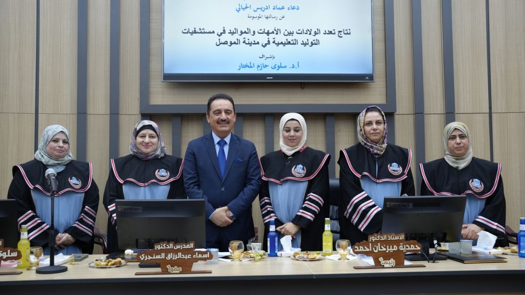 مناقشة رسالة الماجستير الموسومة " نتاج تعدد الولادات بين الأمهات والمواليد في مستشفيات التوليد التعليمية "