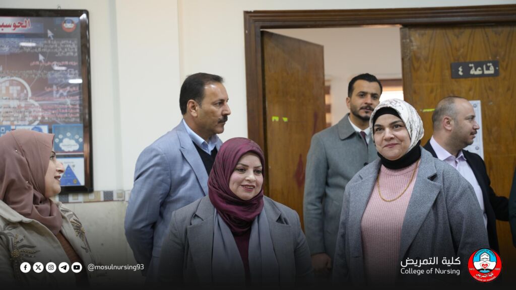 جانب من زيارة الفريق المقيم الوطني للاعتماد البرامجي إلى مختبرات كلية التمريض بجامعة الموصل، والتي شملت مختبرات فرع العلوم التمريضية الأساسية وفرع العلوم التمريضية السريرية، برفقة عدد من منتسبي الكلية.
