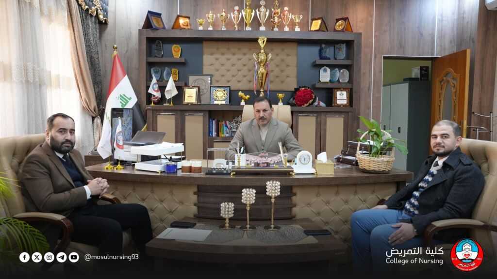 عقد السيد عميد كلية التمريض، الدكتور تحسين محسن حسين، لقاءً رسميًا ضمّ الدكتور عمر قصي جاسم، مدير قسم حدائق العلوم والتكنولوجيا، والمدرس المساعد مصطفى ناظم سالم، مسؤول شعبة الريادة، والأستاذ أحمد عبد الكريم، مسؤول شعبة التأهيل والتوظيف.