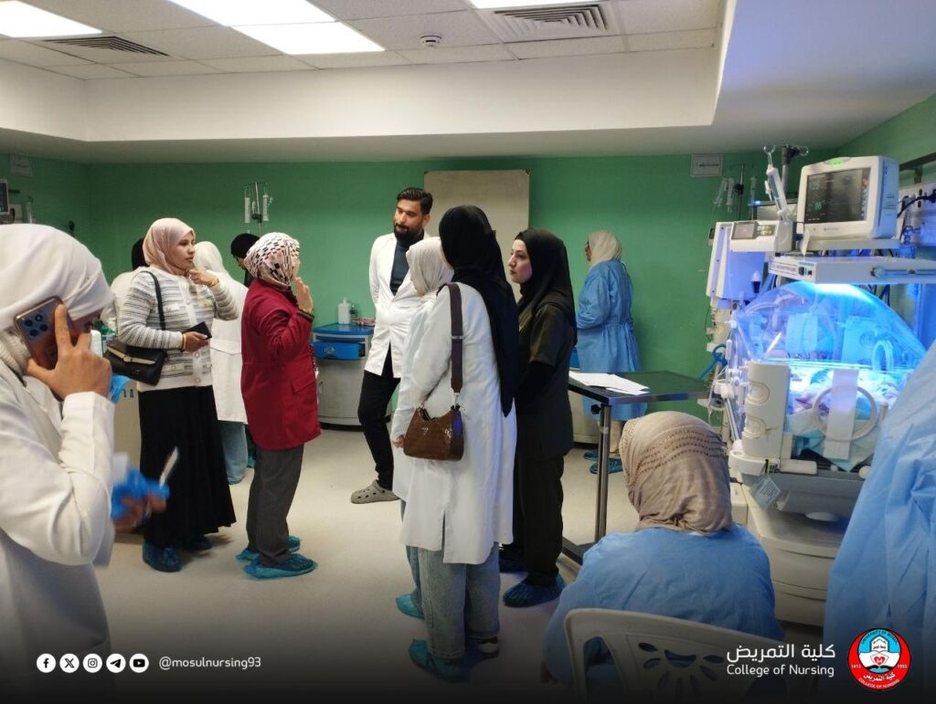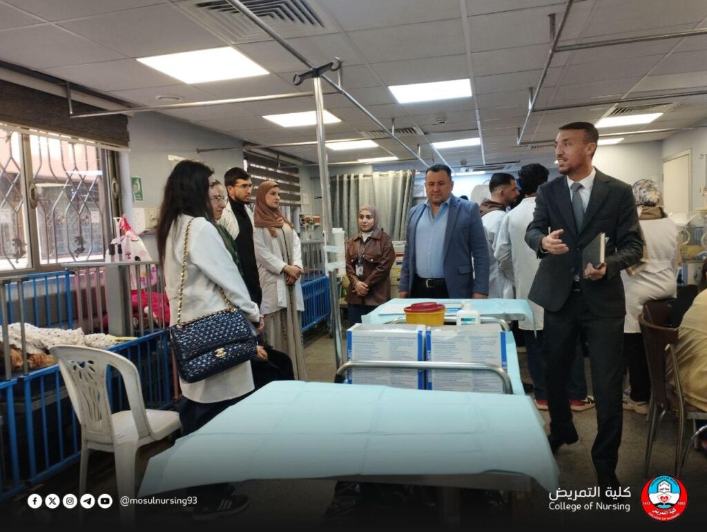بتوجيه مباشر من السيد عميد كلية التمريض الأستاذ المساعد الدكتور تحسين محسن حسين، وبإشراف السيد رئيس فرع العلوم التمريضية الأستاذ الدكتور محمود محمد أحمد، أجريت هذا اليوم زيارة ميدانية إلى مستشفى ابن الأثير للأطفال لمتابعة واقع التدريب العملي لطلبة المرحلة الثالثة والوقوف على احتياجاتهم في البيئة السريرية.
