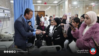 وكان في استقبال الوفد الزائر السيد رئيس فرع العلوم التمريضية السريرية الدكتور محمود محمد أحمد، والسيد مقرر الفرع الدكتور لوي أمجد، حيث قاما بتنظيم جولة ميدانية للطالبات في مختبرات الكلية، اطّلعن خلالها على التجهيزات المختبرية وآليات التدريب العملي، إضافة إلى التعريف بدور التمريض في تقديم الرعاية الصحية وخدمة المجتمع.