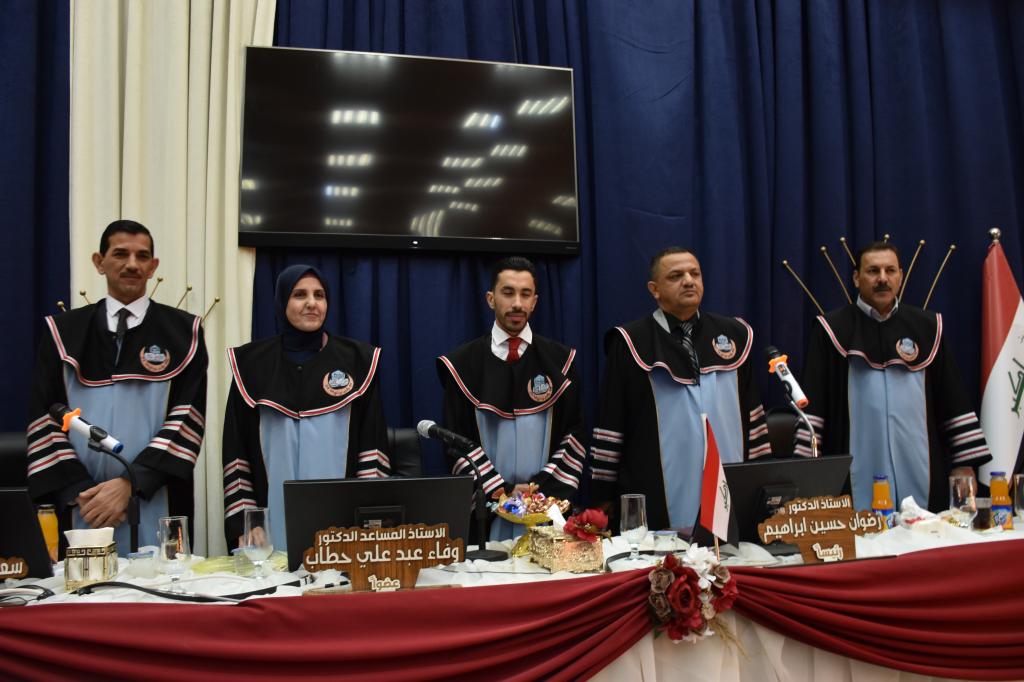 تراس لجنة المناقشة الأستاذ الدكتور رضوان حسين ابراهيم وعضوية كل من الأستاذ المساعد الدكتور تحسين محسن حسين والاستاذ المساعد الدكتورة وفاء عبد علي حطاب من كلية التمريض جامعة بغداد وبإشراف وعضوية المدرس الدكتور سعد حسين مراد.