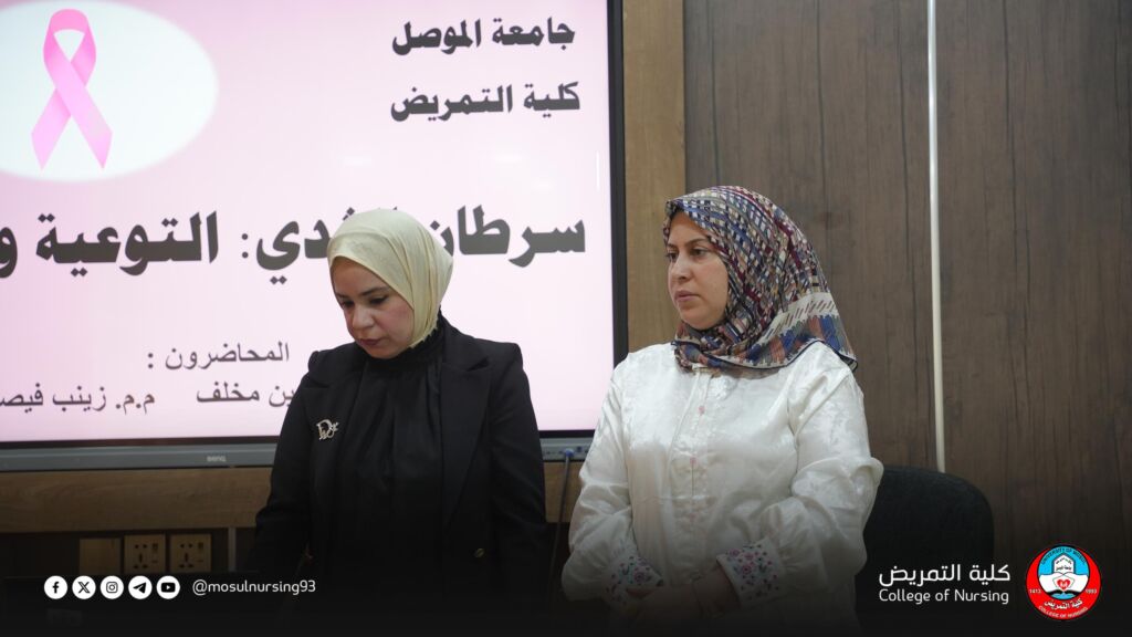 برعاية وإشراف السيد عميد كلية التمريض الأستاذ المساعد الدكتور تحسين محسن حسين، وبمتابعة السيدة مسؤولة وحدة تمكين المرأة المدرس المساعد زينب فيصل، أقامت كلية التمريض محاضرة توعوية بعنوان “التوعية بسرطان الثدي”، قدّمتها السيدة معاون العميد للشؤون العلمية والطلبة والدراسات العليا الأستاذ المساعد الدكتورة هناء حسين مخلف.