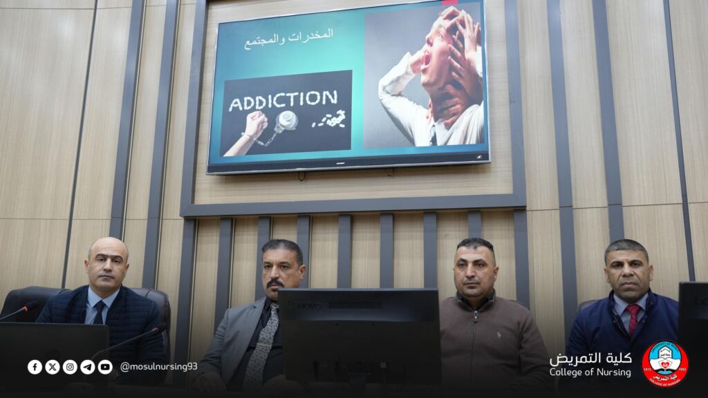 كلية التمريض تنظّم محاضرة توعوية تثقيفية حول المخدرات ومخاطرها بالتعاون مع مديرية مخدرات نينوى