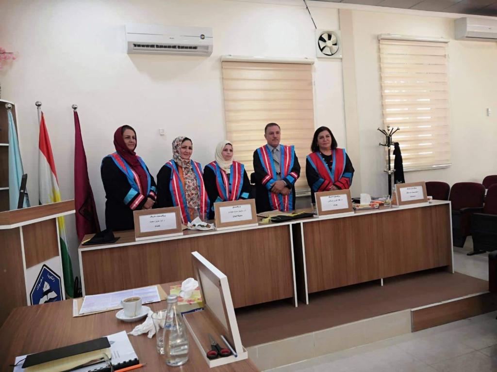 ترأس الأستاذ الدكتور سلوى حازم فاضل المختار لجنة مناقشة طالبة الدراسات العليا الماجستير ( سميره محمد علي ) في رسالتها الموسومه تحت عنوان( Effectiveness of nursing car instruction program on on women with epeisotomy and perennial injuries in hospitals of duhok city )في تمريض صحة الأم و الطفل كلية التمريض / جامعه دهوكوقد اوصت لجنة المناقشة بعد انتهاء مناقشة الطالبة بمنحها شهادة الماجستير بعد اكمالها جميع المتطلبات