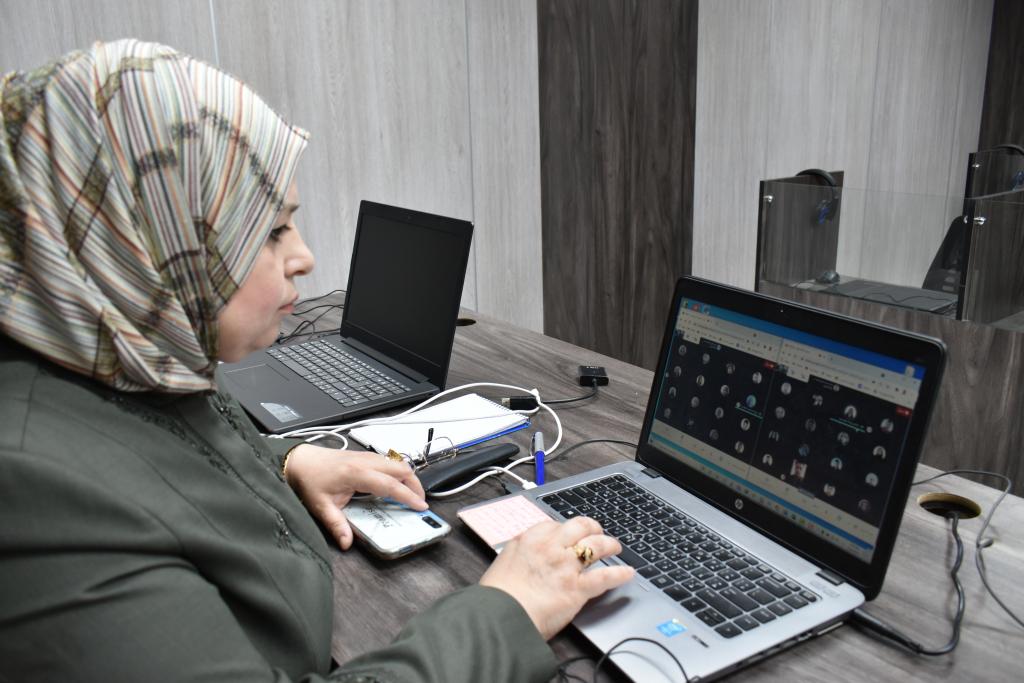 حيث تابعت السيدة عميد الكلية الاستاذ الدكتورة سلوىٰ حازم المحتار سير الامتحانات لطلبة الدراسات العليا(حضورياً) وطلبة الدراسات الاولية(إلكترونيًا) حيث اطلعت على سير العملية الامتحانية من خلال الوقوف على واقع الاسئلة الامتحانية من خلال التفاعل مع مجموعة من الطلبة الممتحنين عبر منصة Google Meet، كذلك اشارت الدكتورة عميد الكلية الى التوصيات والتعليمات الوزارية الخاصة بالامتحانات الحضورية لطلبة الماجستير والى التعليمات الخاصة بطلبة الدراسة الاولية .