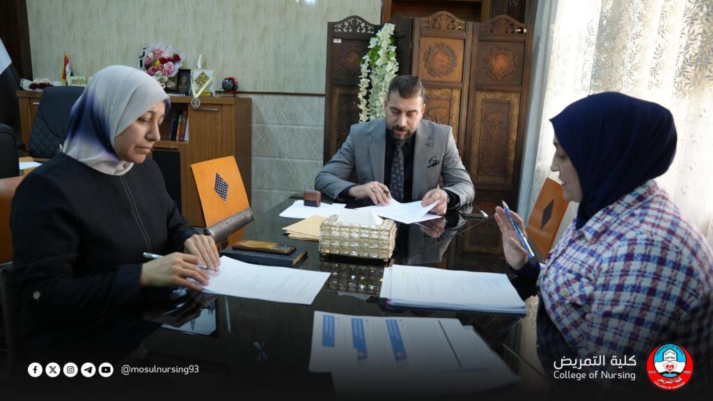 عقد السيد معاون العميد للشؤون الإدارية والمالية، الدكتور ريان خليل إبراهيم، اجتماعًا رسميًا بحضور السيدة معاون العميد للشؤون العلمية والطلبة والدراسات العليا، الدكتورة هناء حسين مخلف، لمناقشة صياغة وتحديث الرؤية والرسالة والأهداف الخاصة بكلية التمريض.