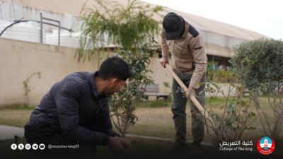 معاون عميد كلية التمريض يجري جولة تفقدية في حدائق الكلية