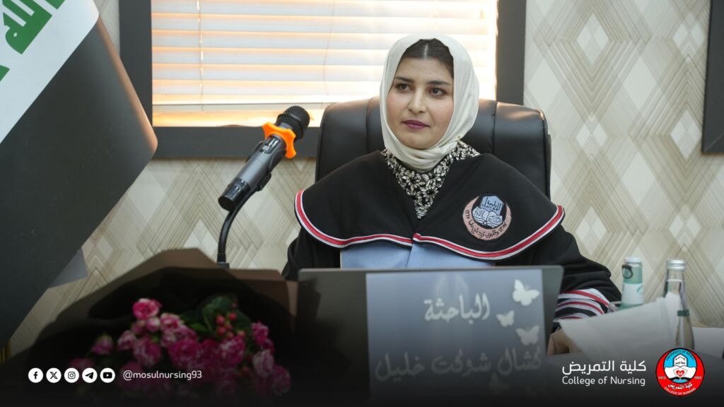 بحضور السيد عميد كلية التمريض الأستاذ المساعد الدكتور تحسين محسن حسين، جرت في قاعة المناقشات بكلية التمريض / جامعة الموصل، مناقشة رسالة الماجستير المقدمة من الطالب كشال شوكت خليل والموسومة: