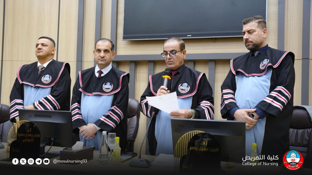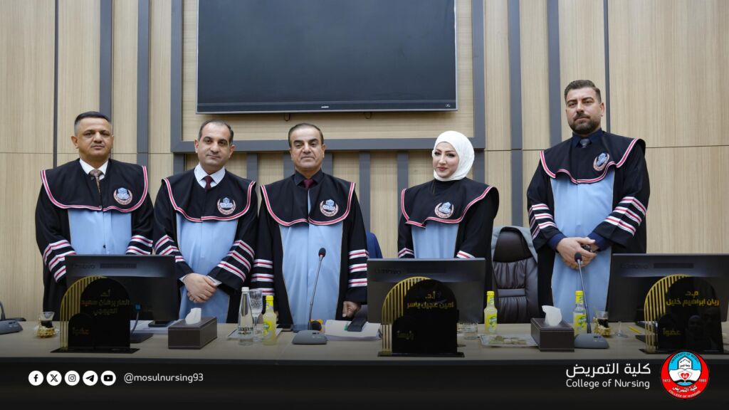 مناقشة رسالة ماجستير في كلية التمريض بجامعة الموصل حول العوامل المؤثرة على التوازن بين العمل والحياة المدرك بين الممرضات دراسة مقطعية في مستشفيات مدينة الموصل