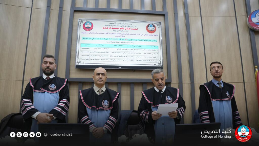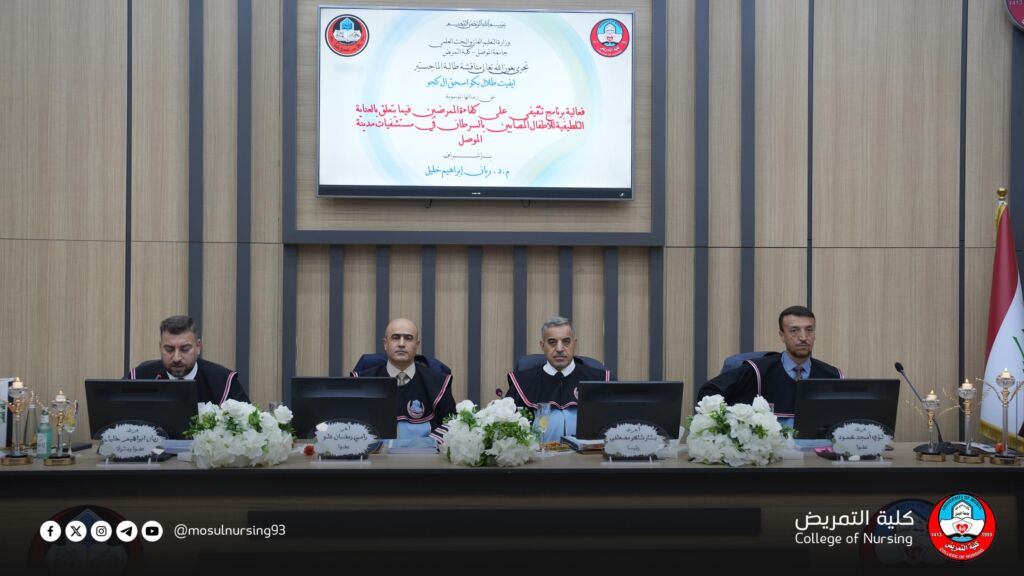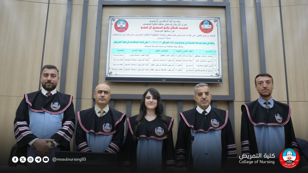 مناقشة رسالة ماجستير في كلية التمريض بجامعة الموصل حول كفاءة الممرضين في العناية التلطيفية للأطفال المصابين بالسرطان