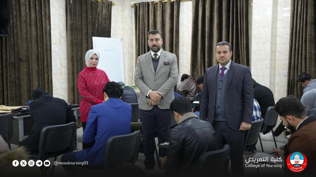 بالتزامن مع بدء الامتحان التقويمي لكليات التمريض، أجرى السيد عميد كلية التمريض، الدكتور تحسين محسن حسين، جولةً تفقدية للاطلاع على بدء الامتحان التقويمي المشترك لكليات التمريض وذلك في إطار حرص عمادة الكلية على توفير بيئة امتحانية مناسبة والالتزام بالتعليمات والضوابط المعتمدة.