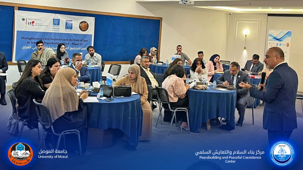 شارك الأستاذ المساعد الدكتور فتحي محمد فتحي مدير مركز بناء السلام والتعايش السلمي والأستاذ الدكتور وعد إبراهيم خليل رئيس قسم بناء القدرات في الورشة الحوارية الموسومة وصول الضحايا والمتضررين الى الحق في جبر الضرر الشامل والتي اقامتها منظمة المسلة للتنمية بالتعاون مع العيادة القانونية في كلية الحقوق يوم السبت الموافق٢٠٢٤/٥/١١ وحضرها نخبة من الاكاديميين والمحامين ومؤسسات المجتمع المدني وناقش الاجتماع موضوع وصول الضحايا الى التعويض وجبر الضرر الشامل الذي يشمل التعويض وإعادة التأهيل وتخليد الذكرى وكانت مشاركة المركز فاعلة في تقديم توصيات خاصة بتعديل قانون التعويضات وبما يشمل غالبية المتضررين .