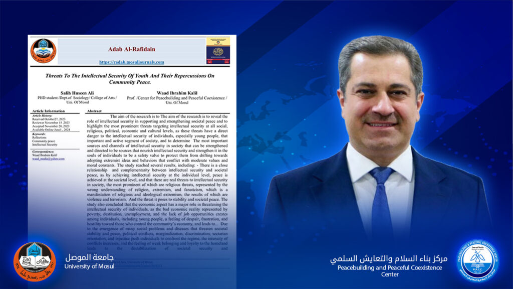 ألتقى مدير مركز بناء السلام والتعايش السلمي. الاستاذ المساعد الدكتور فتحي محمد فتحي الحياني وأعضاء من مجلس ادارة المركز وفدا رفيعا من برنامج الامم المتحدة الانمائي UNDP ليوم الخميس الموافق ٢٠٢٤/٧/٢٥ للتشاور حول قضايا عديدة تخص الطرفين ومنها فتح افاق التعاون مع جامعة الموصل من خلال مركز بناء السلام والتعايش السلمي الذي ينفذ نشاطات علمية عديدة تقع ضمن اهتمامات برنامج الامم المتحدة الانمائي كونه اكثر المؤسسات المختصة ببناء السلام وتعزيزه والتماسك المجتمعي والتعايش السلمي وأتفق الطرفان على مواصلة الحوار لتعزيز العلاقة بين جامعة الموصل وبرنامج الامم المتحدة الإنمائي مع إيلاء مركز بناء السلام أهمية خاصة في هذه العلاقة .