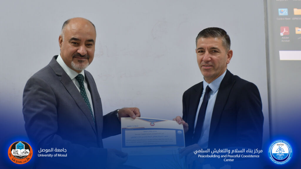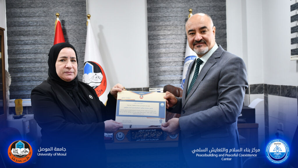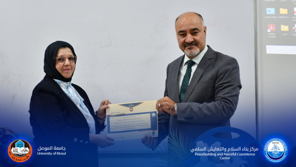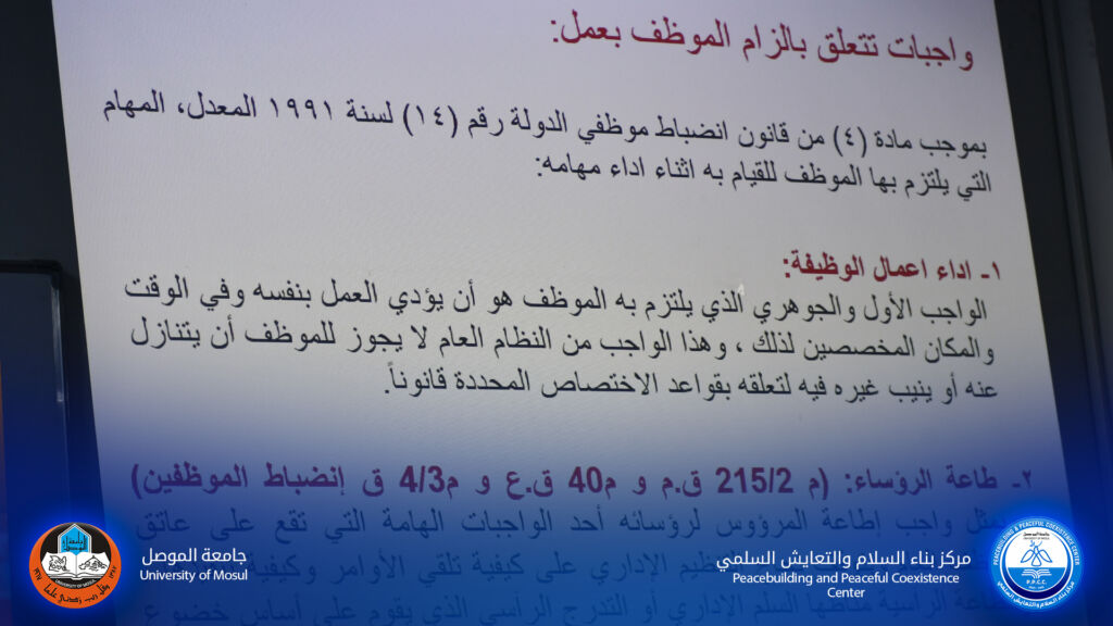أقام مركز بناء السلام والتعايش السلمي ورشة علمية بعنوان “قانون انضباط موظفي الدولة وتحسين الأداء الوظيفي ” بالتعاون مع وحدة شؤون المرأة في رئاسة جامعة الموصل يوم الأحد الموافق 21 أيلول 2025 في كلية الآداب/قسم الإعلام.