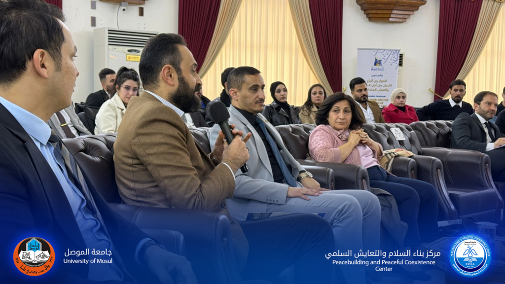 لليوم الثاني على التوالي يستمر البرنامج التدريبي الذي يشرف على تنفيذه مركز بناء السلام والتعايش السلمي بالتعاون مع مجلس الدين والامن ومركز الحوار العالمي (كايسيد) ضمن مسار منتدى نينوى الذي اقيم على قاعة المنتدى العلمي والادبي لجامعة الموصل بمشاركة طلابية نخبوية وحضور اكاديمي من داخل وخارج جامعة الموصل . اذ شمل اليوم الثاني جلسات حوارية ومجاميع عمل ترتبط بتجارب دولية للحوار الديني الناجح قدمها السيد ايميليانو مدير مركز الدين والامن ، كماشارك في الجلسات الحوارية طلبة جامعة الموصل من كليات الحقوق والاداب قسمي الاعلام والاجتماع فضلا عن طلبة اخرين من كلية الامام الاعظم مع اساتذتهم وضيوف من خارج محافظة نينوى .