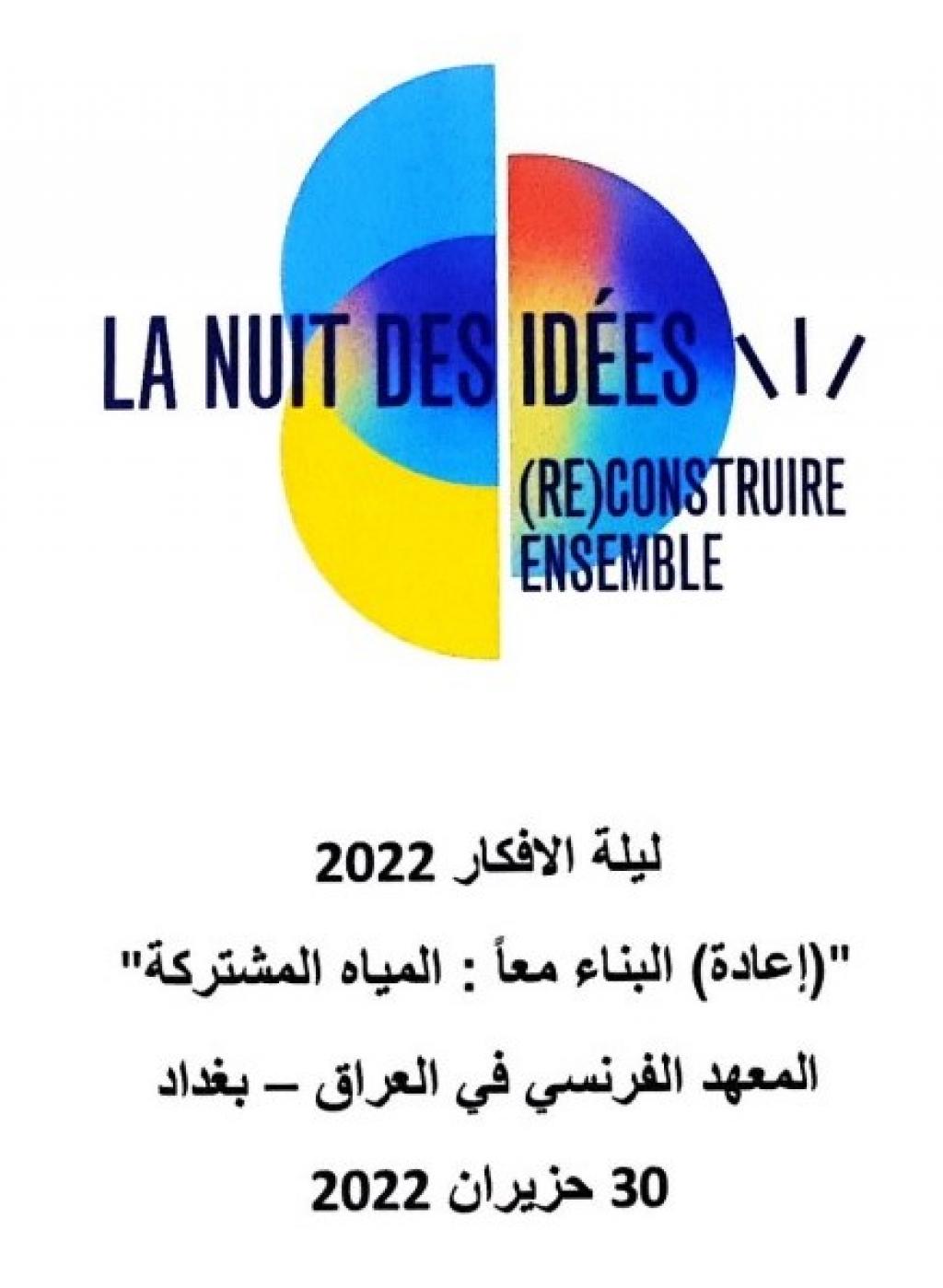 بدعوة كريمة من سعادة سفير فرنسا لدى العراق السيد ايريك شوفاليه، وبحضور كل من وزير البيئة العراقي الدكتور جاسم عبدالعزيز حمادي ووكيل وزارة الموارد المائية السيد رائد عبد زيد الجشعمي شارك الدكتور ابراهيم عادل ابراهيم الحافظ في ليلة الافكار 2022 المقامة في المعهد الفرنسي في العراق – بغداد ، حيث شارك الباحث ببوستر عن القوانين الدولية والمعاهدات لادارة المياه العابرة للحدود – دجلة والفرات دراسة حالة. تضمنت الامسية مواضيع نقاشية حول المياه المتشاطئة والعابرة للحدود والمشاكل والحلول، والاهوار العراقية وما تعانية من انخفاض في كميات المياه الواردة اليها وتأثيرها على البيئة العراقية. شارك في الامسية عدد من المفكرين والباحثينالعراقين من مختلف الجامعات وبعض الناشطين والصفحين من دولة فرنسا.