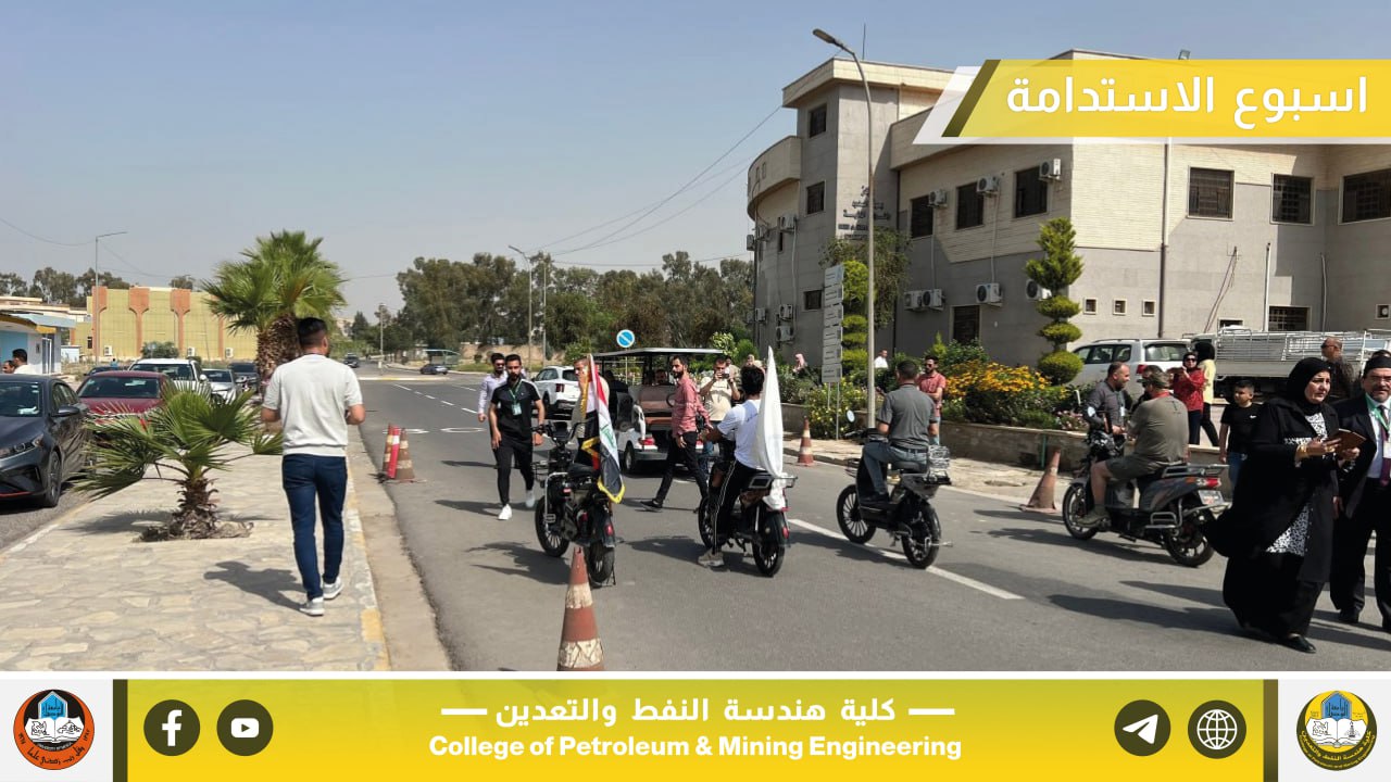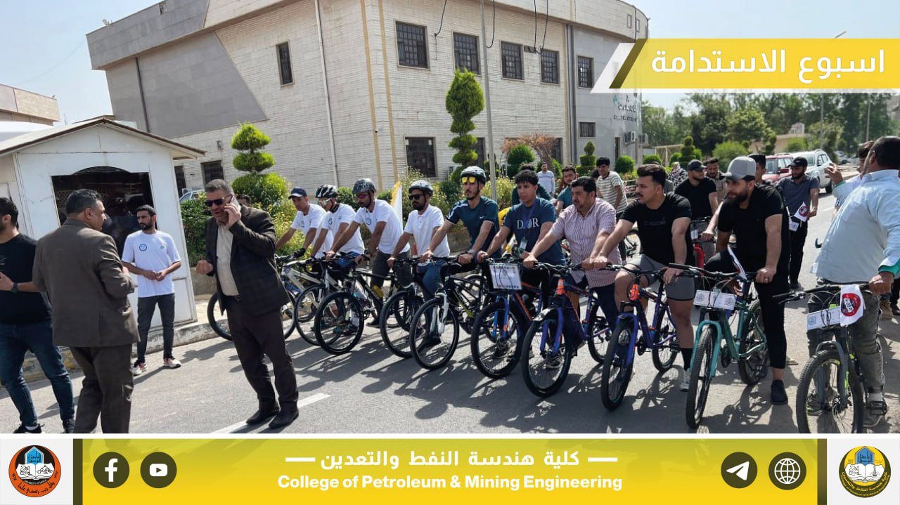 شاركت كلية هندسة النفط والتعدين في استعراض الدراجات الهوائية والدراجات والسيارات التي تعمل على الطاقة النظيفة، والذي أُقيم في اليوم الثالث الموافق يوم الاربعاء 23 نيسان من العام 2025 ضمن فعاليات المهرجان السنوي الثالث للتنمية المستدامة في جامعة الموصل، تحت شعار: “جامعة الموصل… الطريق نحو طاقة نظيفة وبيئة مستدامة.” وجاءت هذه المشاركة تأكيداً على التزام الكلية بمبادئ الاستدامة البيئية والطاقة النظيفة، وتعزيزاً لدور الجامعات في نشر الوعي البيئي وتشجيع استخدام وسائل النقل المستدامة.