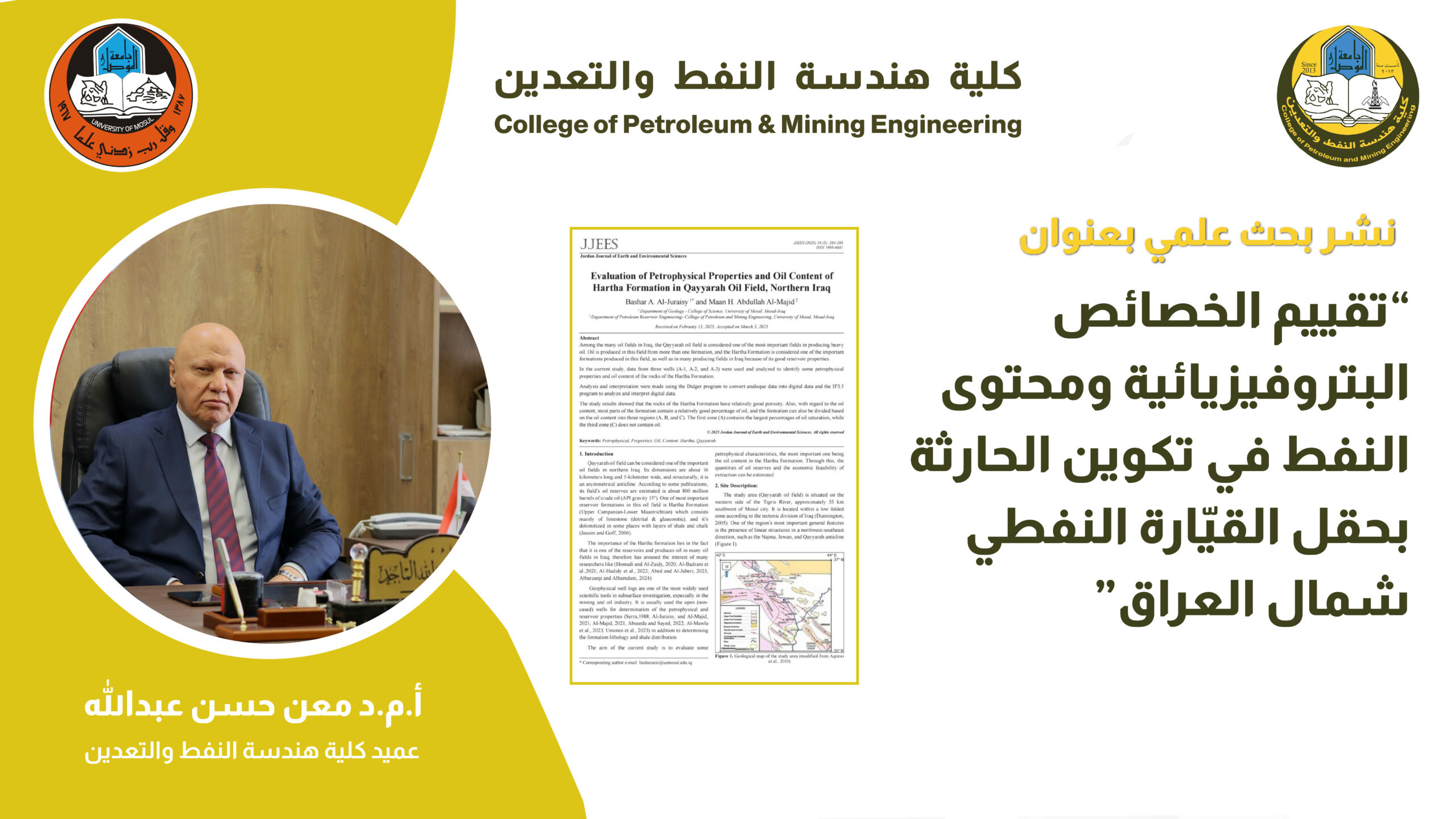برعاية الأستاذ الدكتور وحيد محمود الإبراهيمي، رئيس جامعة الموصل المحترم، وبإشراف الأستاذ المساعد الدكتور معن حسن عبد الله، عميد كلية هندسة النفط والتعدين المحترم. وضمن [إقرأ المزيد]