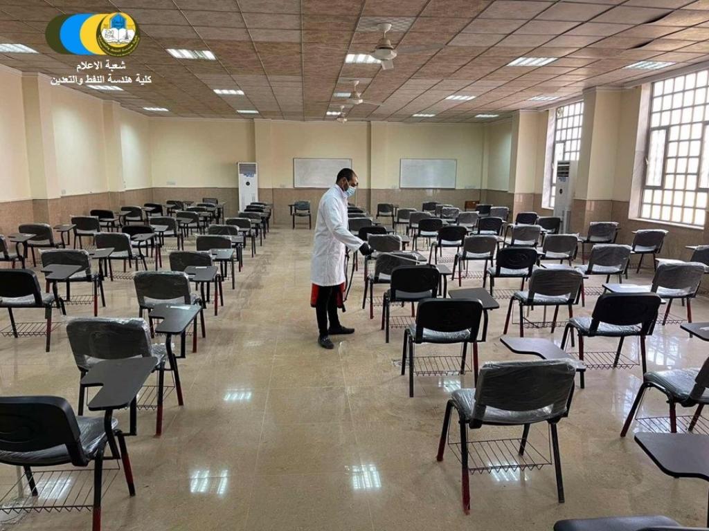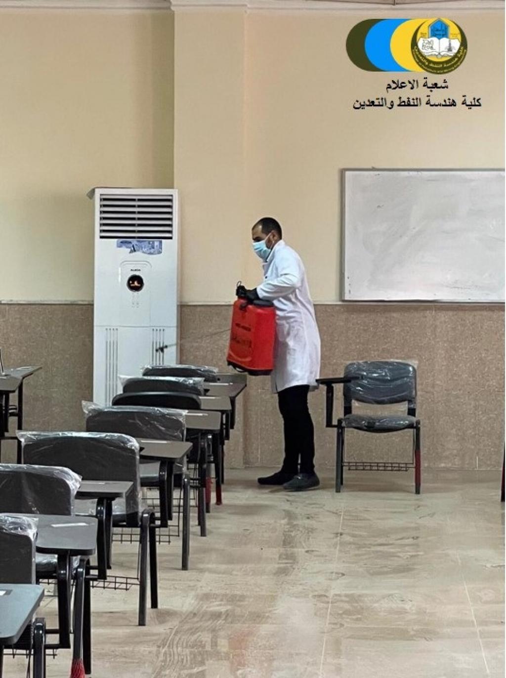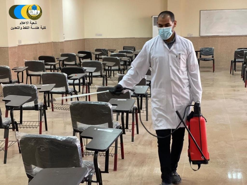 تفقد السيد عميد كلية هندسة النفط والتعدين أ. د. نبيل يوسف البنا سير الامتحانات الحضورية اليوم ٢٠٢١/٧/٢٦ . وأكد سيادته على الإجراءات الصحية من تعفير القاعات الامتحانية قبل موعد الامتحان وكذلك فحص الطلبة بالأجهزة الحرارية عند دخولهم للكلية واتخاذ الإجراءات الإدارية المناسبة في حالة ظهور أي شك في الإصابة. متمنيا لاعزاءنا الطلبة الصحة والتوفيق.