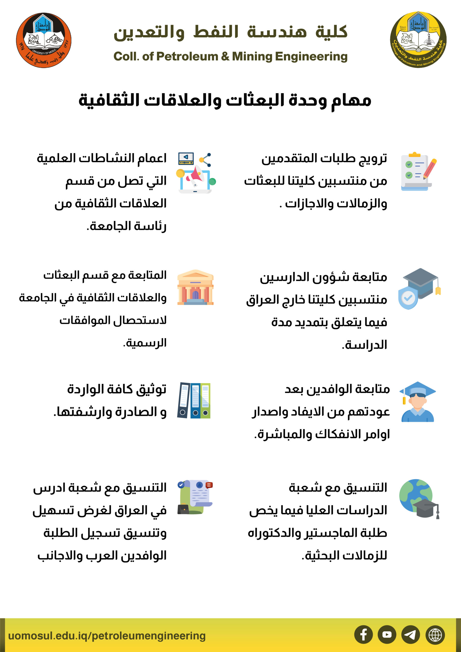 لمعرفة مهام ومسؤوليات وحدة البعثات والعلاقات الثقافية