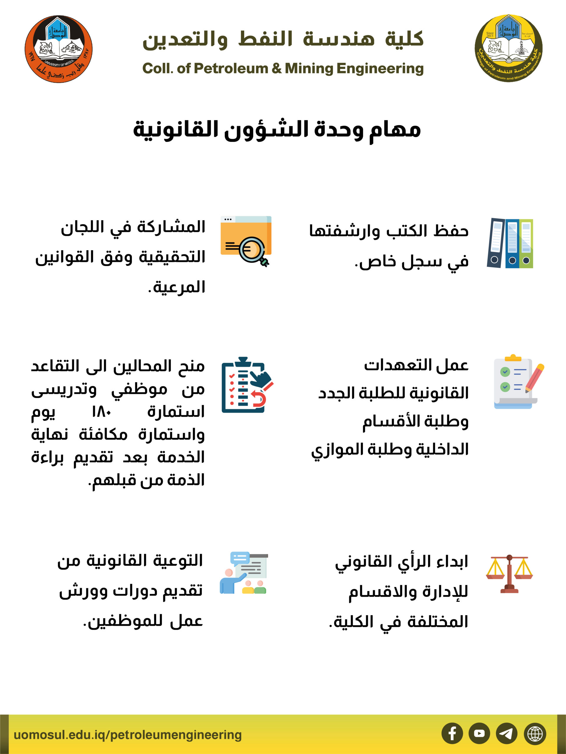 لمعرفة مهام ومسؤوليات وحدة الشؤون القانونية