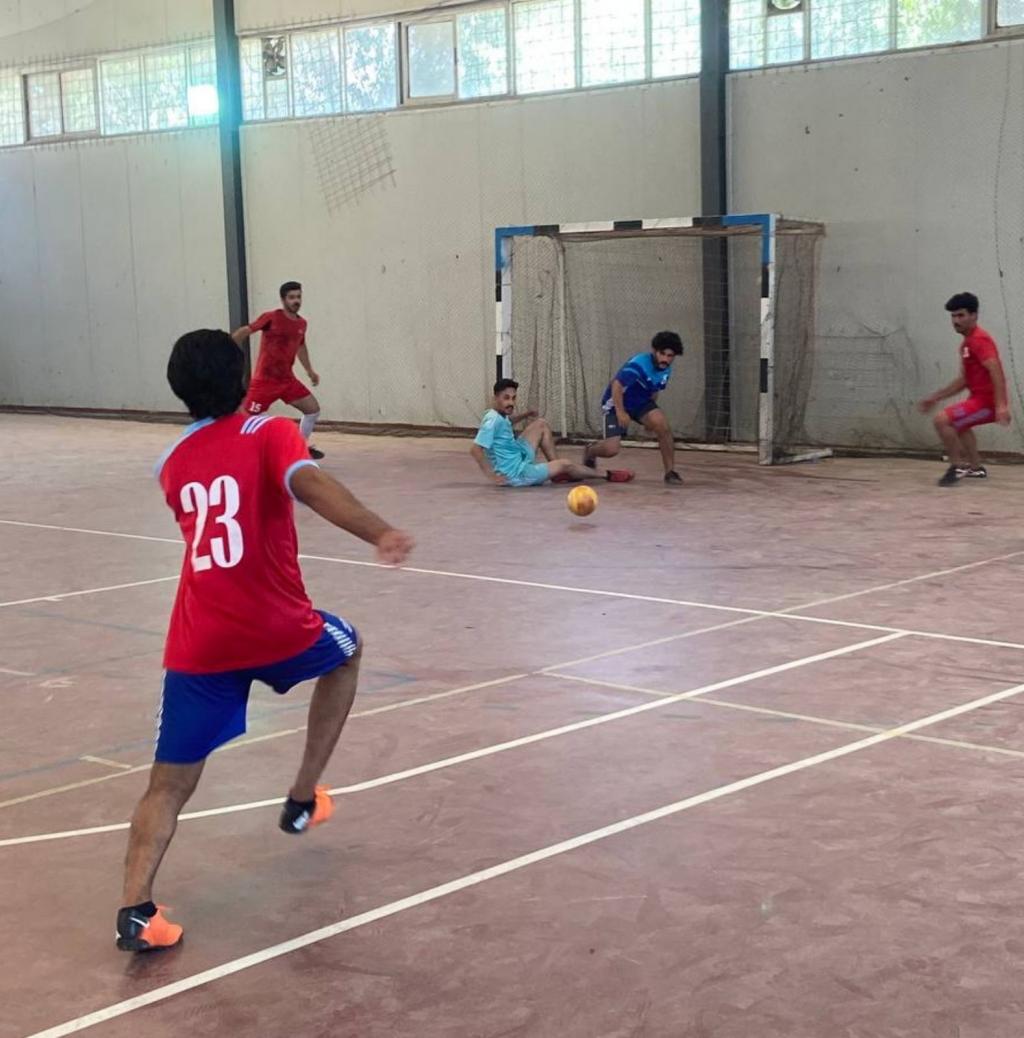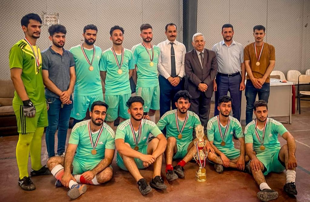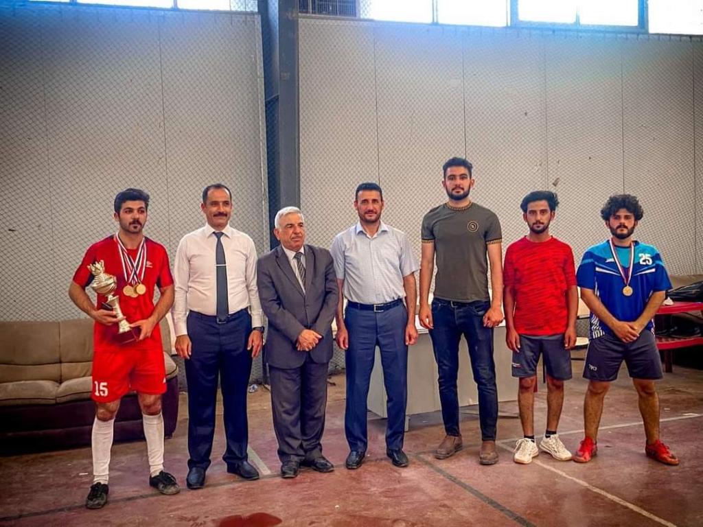 حضر السيد عميد كلية هندسة النفط والتعدين الأستاذ الدكتور نبيل يوسف البنا المباراة النهائية لدوري بطولة كرة قدم الصالات لطلبة ألاقسام العلمية للكلية يوم الخميس ٢/٦/٢٠٢٢ والتي فاز بها فريق قسم هندسة النفط والتكرير – المرحلة الثالثة على فريق قسم هندسة المكامن النفطية – المرحلة الرابعة وتم توزيع الميداليات الذهبية والفضية الفريقين وكأس البطولة للفريق الفائز الأول.