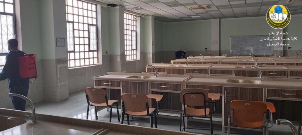 إشارة إلى توجيهات وزارة التعليم العالي والبحث العلمي ورئاسة جامعة الموصل، حول الالتزام بالتعليمات الصحية لخلية الأزمة.تم في هذا اليوم الثلاثاء ٦/٤/٢٠٢١ ، تعفير القاعات الامتحانية والمختبرات وتهيأتها لاجراء الامتحانات الحضورية فيها يوم ١١/٤/٢٠٢١ .