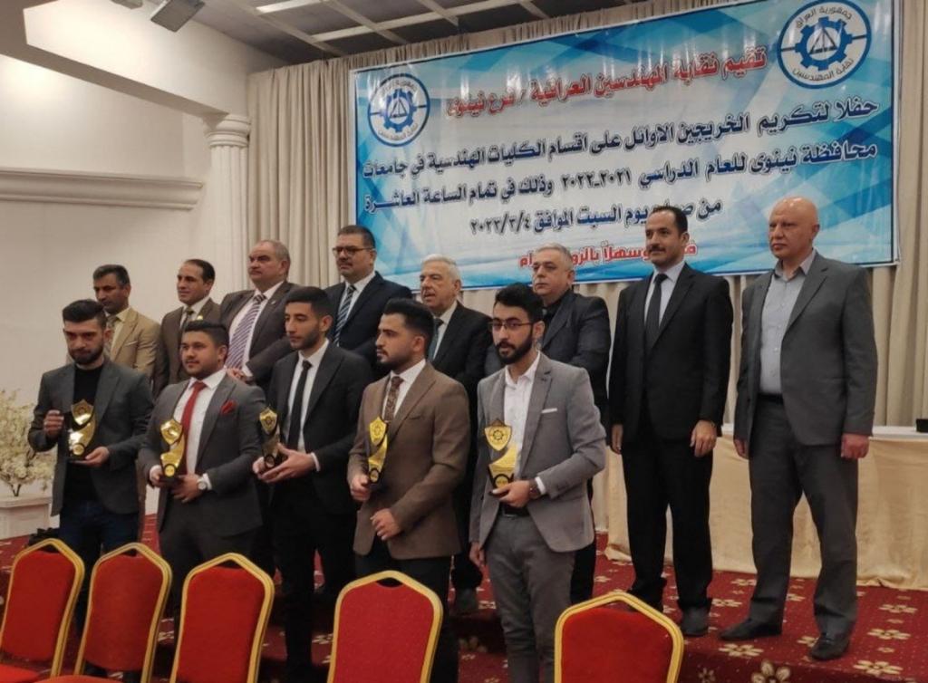 تشرفت جامعة الموصل بتلبية دعوة نقابة المهندسين – فرع نينوى لحضور حفل تكريم الطلبة الأوائل في الاقسام الهندسية لجامعات نينوى . حيث حضر السيد مساعد رئيس جامعة الموصل للشؤون العلمية المحترم أ. د. منير طه سالم نيابة عن السيد رئيس جامعة الموصل المحترم أ. د. قصي كمال الدين الاحمدي، كما شارك السيد عميد كلية هندسة النفط والتعدين المحترم أ. د. نبيل يوسف البنا في تكريم الطلبة الأوائل لاقسام كلية هندسة النفط والتعدين وهنأهم بهذا التميز وتمنى لهم دوام التفوق والنجاح.