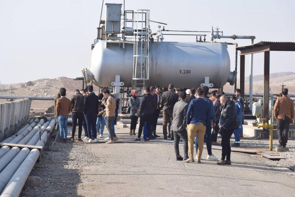 زيارة علميةضمن النشاطات العلمية لقسم هندسة النفط والتكرير/ كلية هندسة النفط والتعدين، تم القيام بزيارة علمية لطلبة المرحلة الثالثة الى حقل عين زالة النفطي التابع لهيئة نفط نينوى يوم الأربعاء المصادف 15 / 12 / 2021 وباشراف مقرر القسم الدكتور محمد اسود جاسم والدكتورة أسماء موفق والدكتورة لقاء ادريس. وقد تم خلال الزيارة الاطلاع على المراحل التي تمر بها عملية انتاج النفط في الحقل ابتداءا من الابار مرورا بوحدة المعالجة وعزل النفط الرطب وصولا الى انابيب التصدير.خالص الشكر والتقدير الى السيد نكتل الجرجري مدير هيئة نفط نبنوى للتسهيلات التي ابداها لغرض إنجاح الزيارة العلمية، والشكر موصول للمهندس نزار مسؤل التدريب في الشركة، وكذلك المهندس جاسم مسؤول وحدة عزل النفط الرطب في قسم المعالجة والجيولوجي عبدالجليل لما قدموه من شرح ومعلومات قيمة حول مراحل انتاج النفط من حقل عين زالة النفطي.