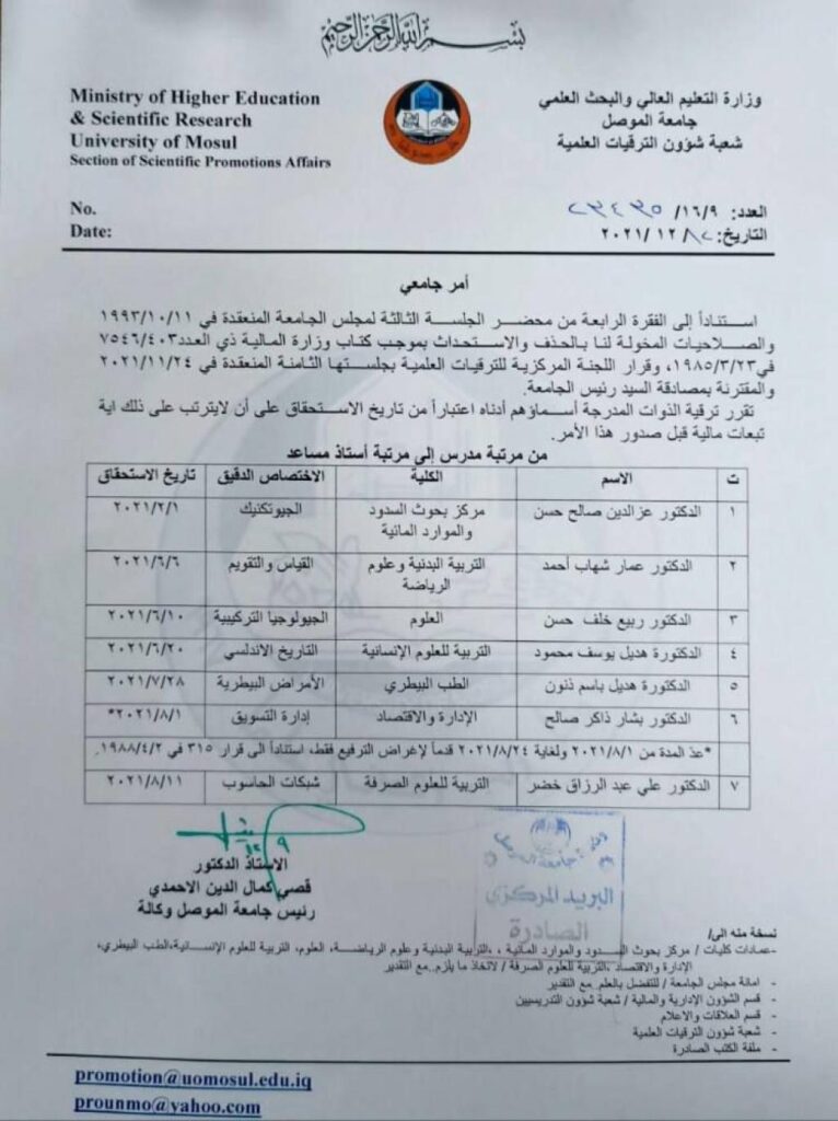 ضوابط وتعليمات تقييمات منتسبي كلية هندسة النفط والتعدين للعام الدراسي 2020-2021