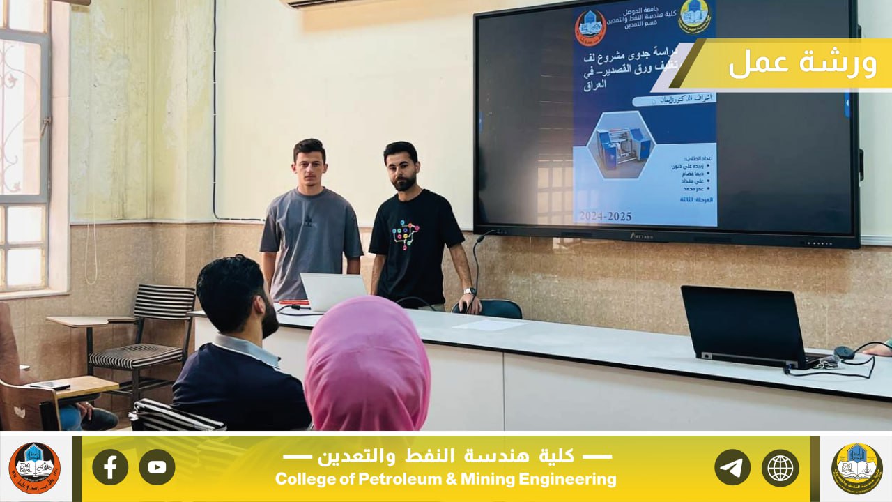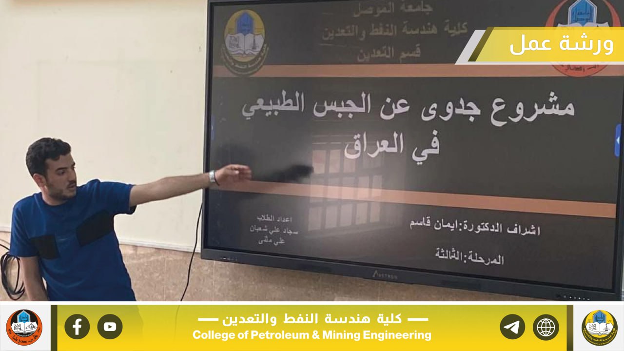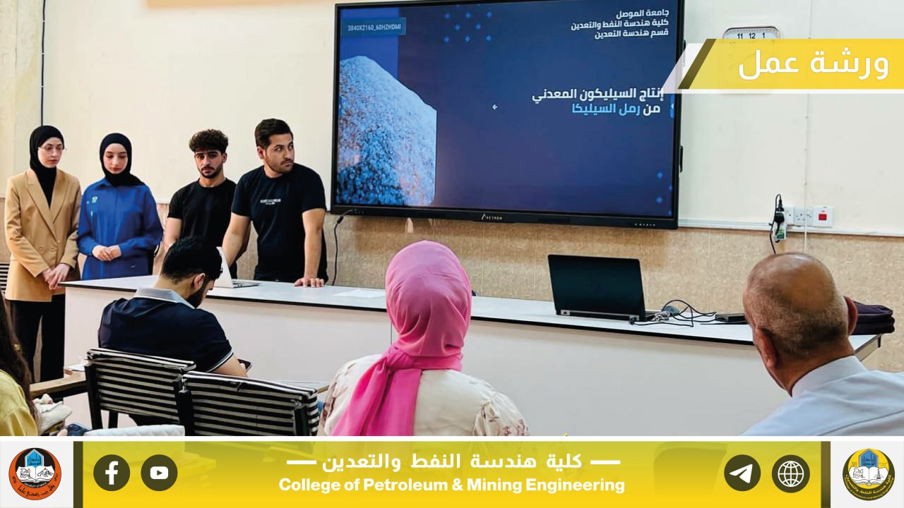 في إطار الأنشطة اللاصفية في كلية هندسة النفط والتعدين / قسم هندسة التعدين، قدّم طلبة المرحلة الثالثة عرضًا لمشاريعهم الخاصة بما بعد التخرج، وذلك بحضور رئيس القسم الدكتور عز الدين صالح الجواد، وإشراف الدكتورة إيمان قاسم الأوجار، مدرسة مادة معالجة الخامات.