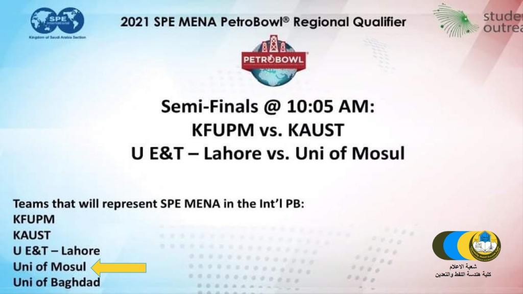 فريق جامعة الموصل (كلية هندسة النفط والتعدين) في مسابقة PetroBowl العالمية