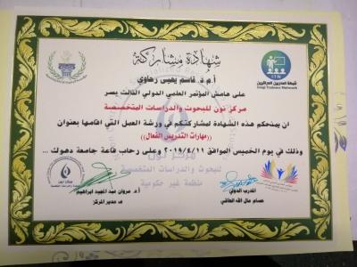 مشاركة تدريسي في ورشتي عمل على هامش المؤتمر الثالث لكليتي التربية الاساسية جامعة الموصل وجامعة دهوك