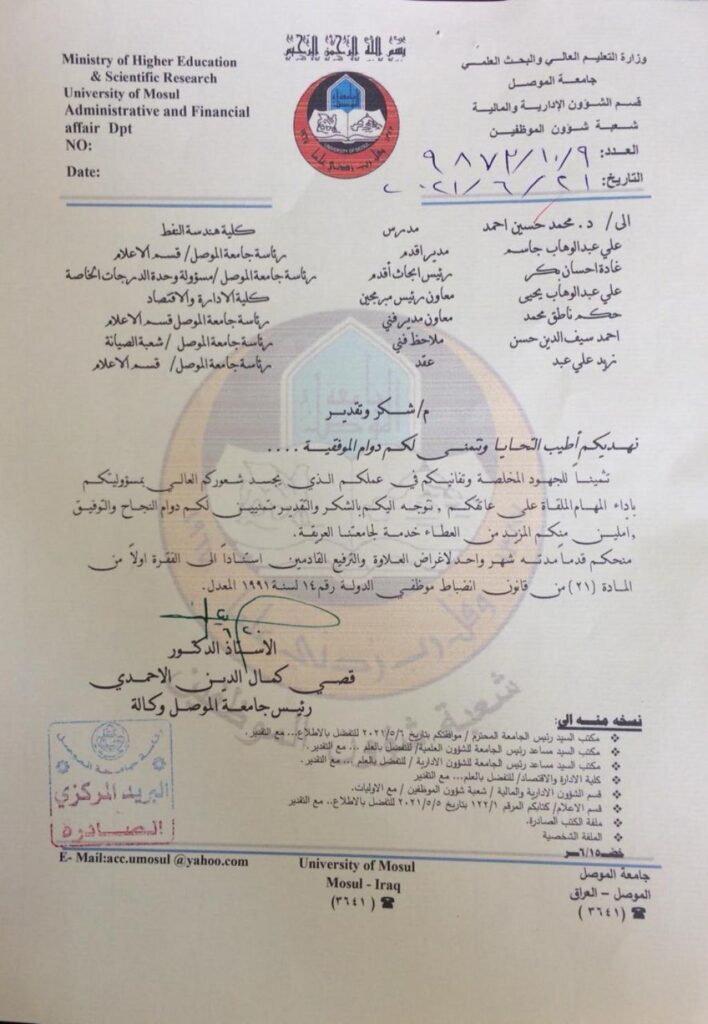 حيث حصل كل من الاستاذ الدكتور ابراهيم سعد ابراهيم الجميلي / قسم هندسة النفط والتكرير، والاستاذ المساعد الدكتور قاسم يحيى رحاوي / قسم هندسة التعدين، والدكتور محمد حسين احمد / قسم هندسة النفط والتكرير على تأييد مشاركة في فعاليات المحفل العلمي متمنين لهم دوام التقدم والنجاح في المسيرة العلمية .