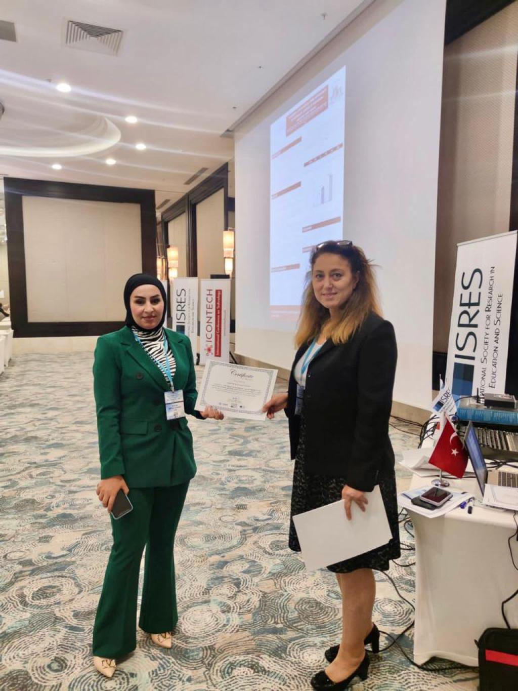 شاركت المدرس المساعد رحمة صائل العكيدي التدريسية في كلية هندسة النفط والتعدين بالمؤتمر الدولي للتكنلوجيا والهندسة والعلوم INTERNATIONAL CONFERENCE ON TECHNOLOGY, ENGINEERING AND SCIENCE (IConTES) الذي اقيم في مدينة انطاليا في تركيا للفترة من 16 الى 19 تشرين الثاني بالبحث الموسوم: THE IMPACT OF WEATHERING AND THE POSSIBILITY OF RECYCLING STONES AND MORTAR IN THE OLD CITY OF MOSUL.