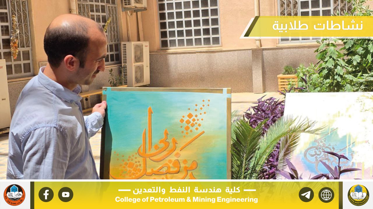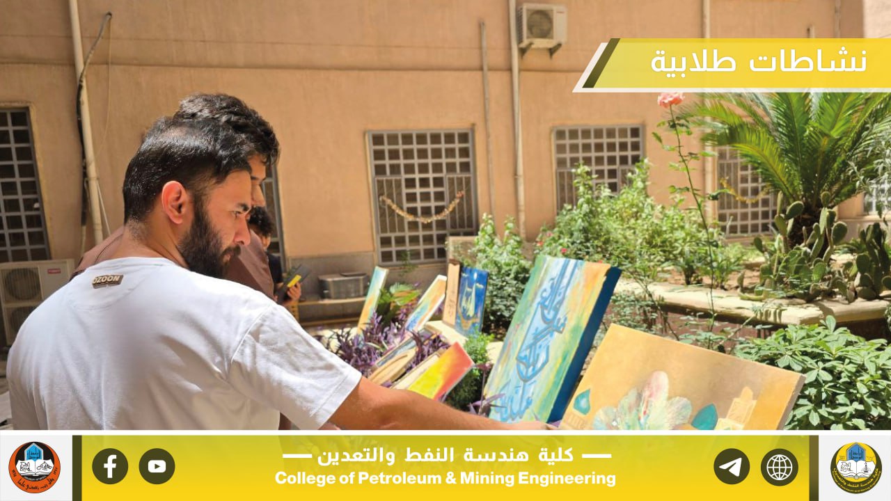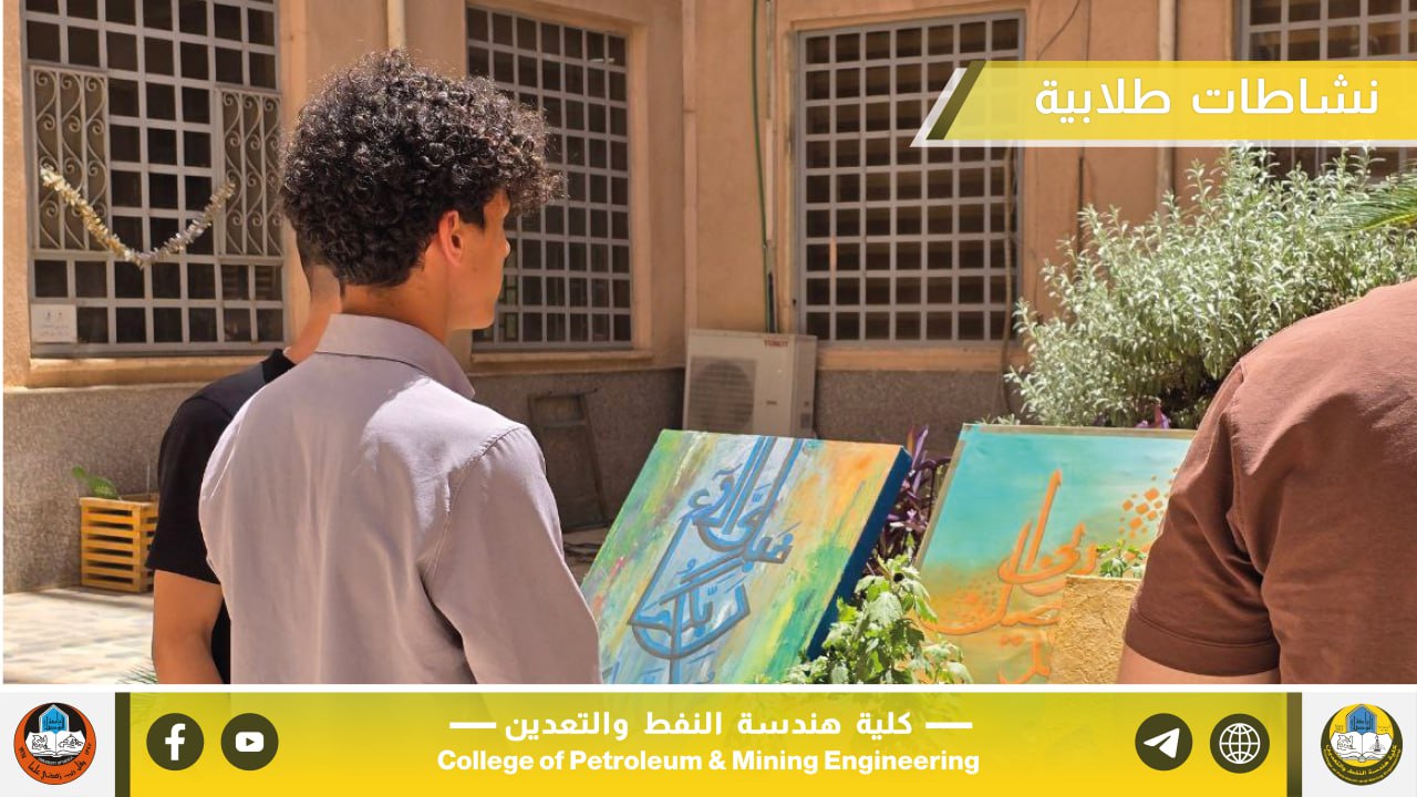 باشراف السيد عميد كلية هندسة النفط والتعدين، الأستاذ المساعد الدكتور معن حسن عبدالله المحترم، أقامت شعبة النشاطات الطلابية معرضاً للوحات الفنية يوم الثلاثاء الموافق 3 حزيران.