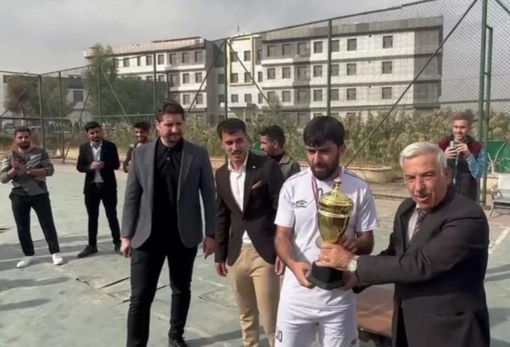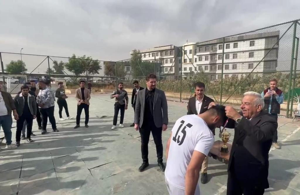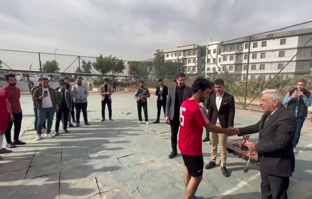 حضرة السيد عميد كلية هندسة النفط والتعدين اللعبة النهائية لدوري خماسي كرة قدم الصالات للكلية يوم الثلاثاء ٢٢/١١/٢٠٢٢ ضمن فعاليات شعبة النشاطات الرياضية في الكلية والتي جرت بين فريقي المرحلة الرابعة والمرحلة الثالثة لقسم هندسة النفط والتكرير والتي فاز بها فريق المرحلة الثالثة .وتم توزيع الميداليات للفريقين وكأس البطولة للفريق الفائز.