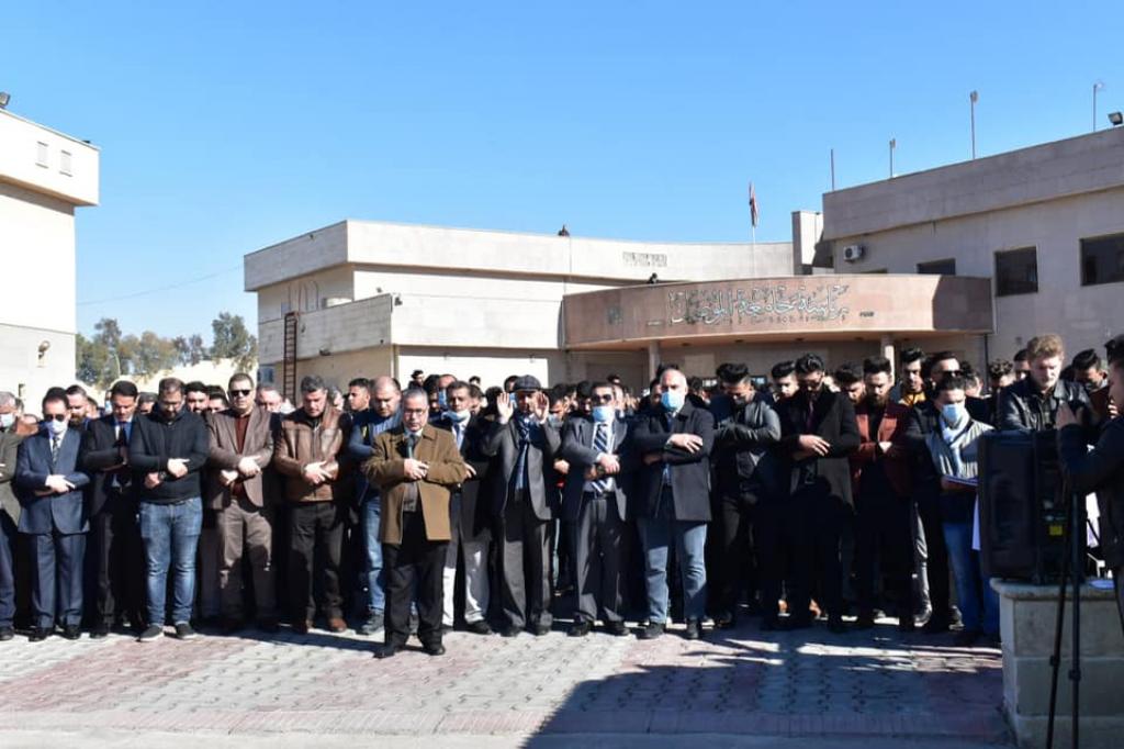 شارك منتسبي كلية هندسة النفط والتعدين إخوانهم منتسبي جامعة الموصل ، اليوم وقفة حداد وصلاة الغائب على أرواح شهداء تفجير ساحة الطيران في بغداد والذي اودى بحياة العشرات من الابرياء.